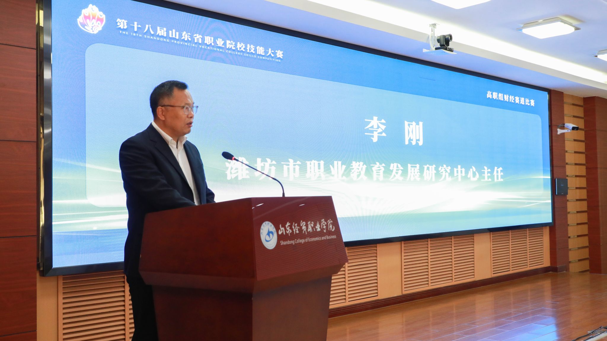 李刚在致辞中介绍了潍坊市作为国家职业教育创新发展试验区、山东省职业教育创新发展示范区,在推动职业教育发展方面作出的努力和取得的成果。他希望学院以赛促教、以赛促学,为区域经济社会发展培养更多高技能人才;各参赛队深化交流与协作,共同探索财经类高技能人才培养的新路径、新模式;参赛选手努力拼搏、沉着应对,赛出最佳水平和风采。