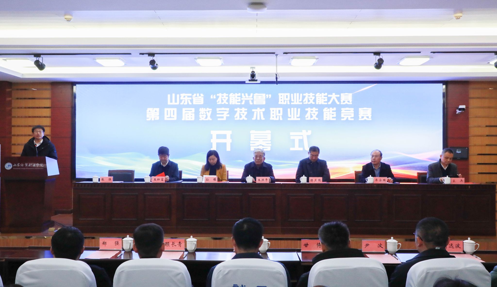 12月20日,山东省“技能兴鲁”职业技能大赛——第四届数字技术职业技能竞赛在学院第二报告厅开幕。本次大赛由山东省人力资源和社会保障厅、山东省商务厅指导,山东省供应链管理协会主办,我院承办。山东省商务厅原副厅长、一级巡视员王洪平,山东省商务厅流通业发展处二级调研员孙瑾,潍坊市商务局副局长王积富,山东省供应链管理协会驻会副会长兼秘书长宋兵,学院党委副书记、院长陈卫国等出席开幕式。学院党委委员、副院长张强主持开幕式。