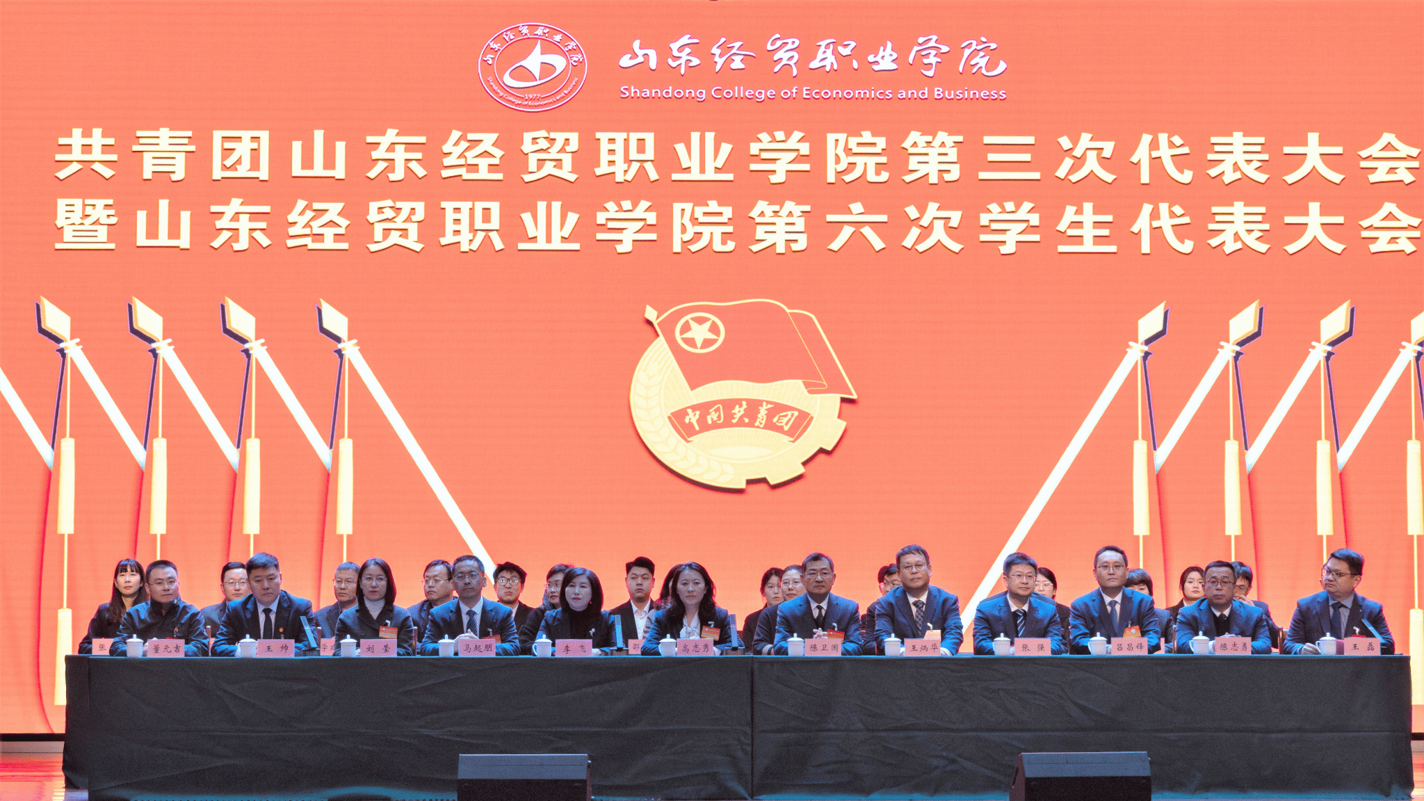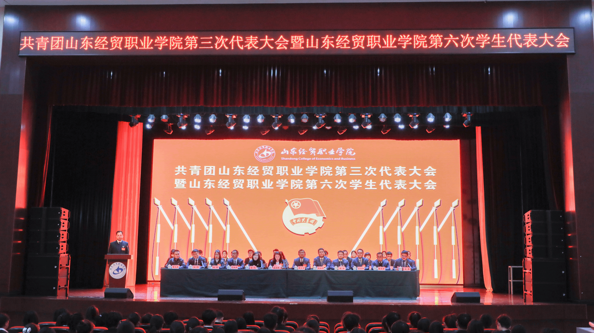 12月25日,共青团山东经贸职业学院第三次代表大会暨山东经贸职业学院第六次学生代表大会在学院大学生活动中心召开。学院党委书记高志秀,党委副书记、院长陈卫国,共青团潍坊市委书记李飞出席会议。学院领导班子成员、共青团潍城区委书记、驻潍高校团委书记、学校相关职能部门负责人、各系部党总支书记出席大会。辅导员代表、青年教师代表、往届团委委员代表、学生会委员代表共300多人参加会议。