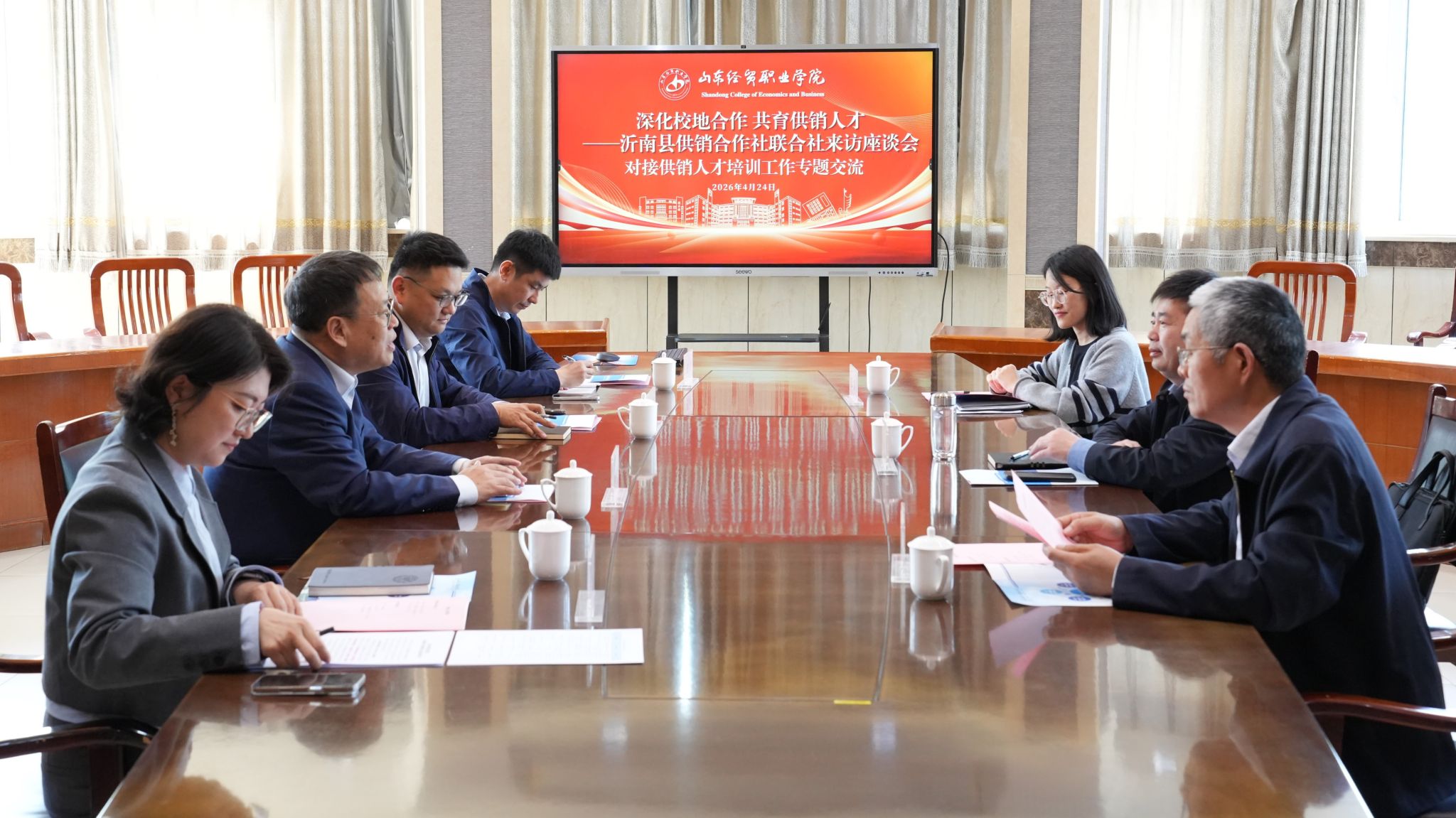 4月24日上午,沂南县供销合作社联合社党组书记、理事会主任杜友涛,沂南县供销合作社联合社党组副书记、监事会主任薛国光等一行4人来校走访交流。学院党委副书记王炳华出席会议。双方围绕供销人才培训、县域供销人才培训基地建设及校地合作等事宜进行了深入探讨。