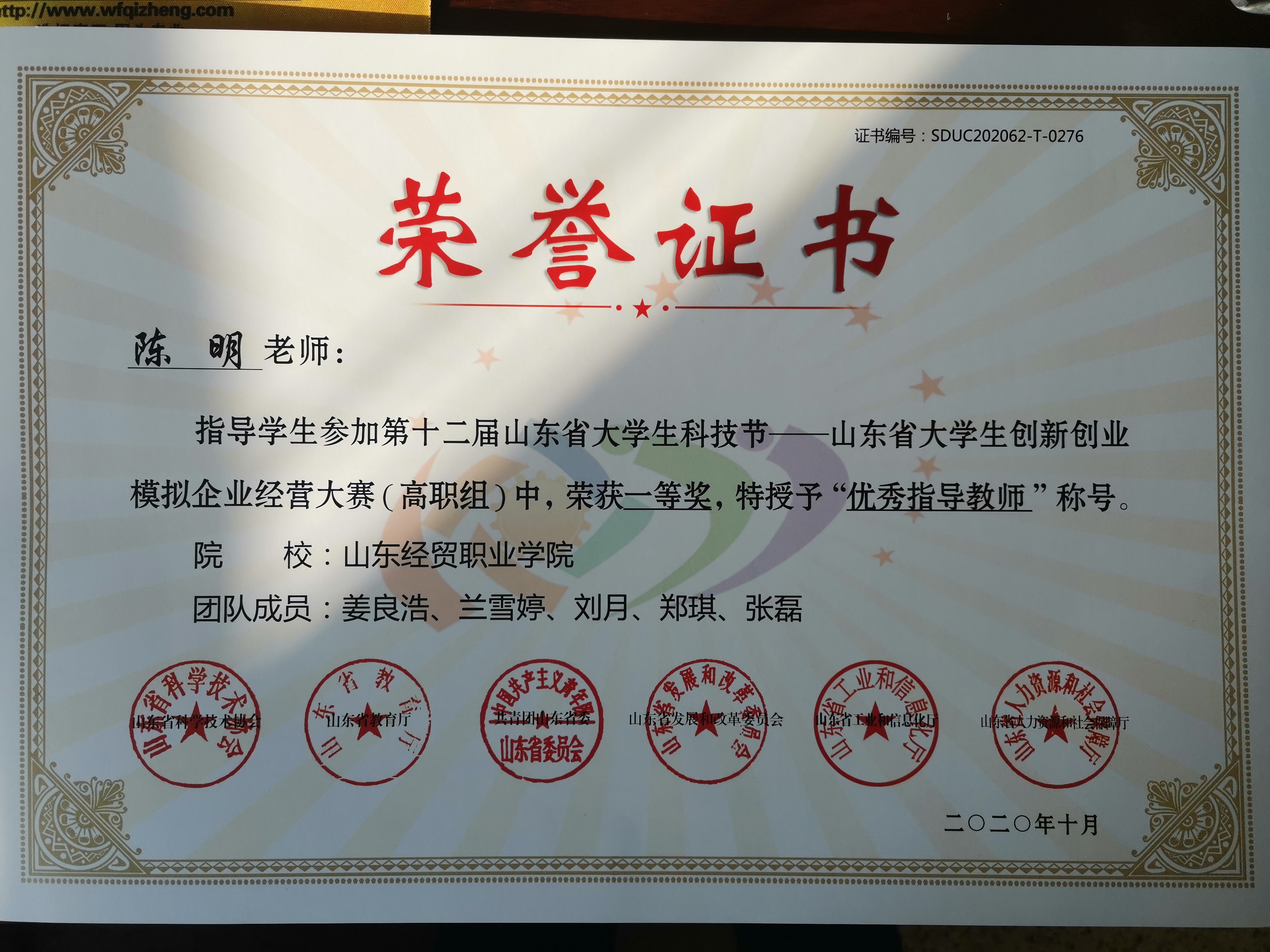 为深入贯彻落实党的十九大精神和省委办公厅、省政府办公厅《关于推进高等教育综合改革的意见》(鲁办发〔2016〕19号)文件精神,按照《关于举办第十二届山东省大学生科技节的通知》(鲁科协发〔2020〕3号)通知要求,开展山东省大学生创新创业模拟企业经营大赛。大赛由山东省科学技术协会、山东省教育厅、共青团山东省委员会、山东省发展和改革委员会、山东省工业和信息化厅、山东省人力资源和社会保障厅主办、日照市科学技术协会和山东水利职业学院承办,我院会计系获得一等奖和两个二等奖的好成绩。