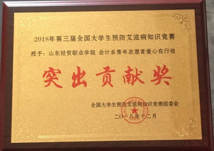 会计系“青年志愿者爱心在行动”协会获第三届全国大学生预防艾滋病知识竞赛“突出贡献奖”荣誉称号
