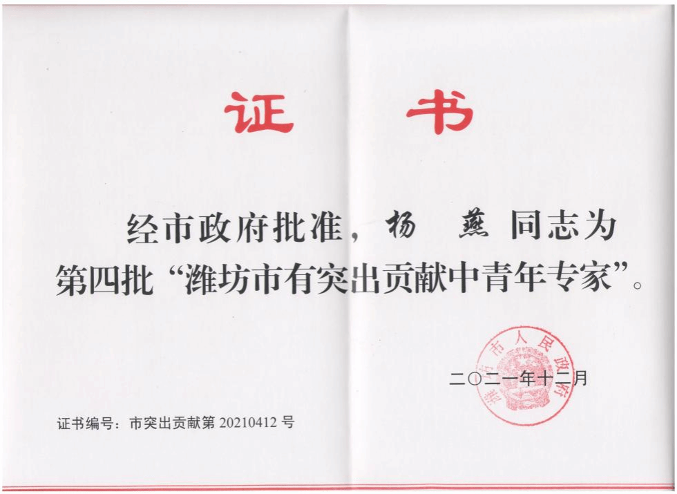 杨燕,中共党员,教授,山东省红色文化研究会副会长,首批山东高校“双带头人”教师党支部书记工作室负责人,国家精品在线开放课程主讲教师,山东学校优秀思政课教师,潍坊市有突出贡献中青年专家,潍坊市中青年社会科学研究拔尖人才,潍坊市思政课教师年度人物,潍坊市党史史志特约研究员。先后荣获潍坊市道德模范,潍坊市“新时代最美女性”、潍坊市“三八红旗手”、潍坊好人、山东好人、“中国好人”提名人选等荣誉称号。多次被评为学院优秀教师、优秀共产党员和山东省供销社先进个人。