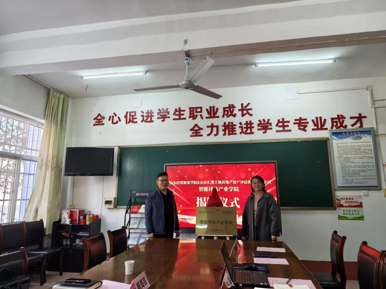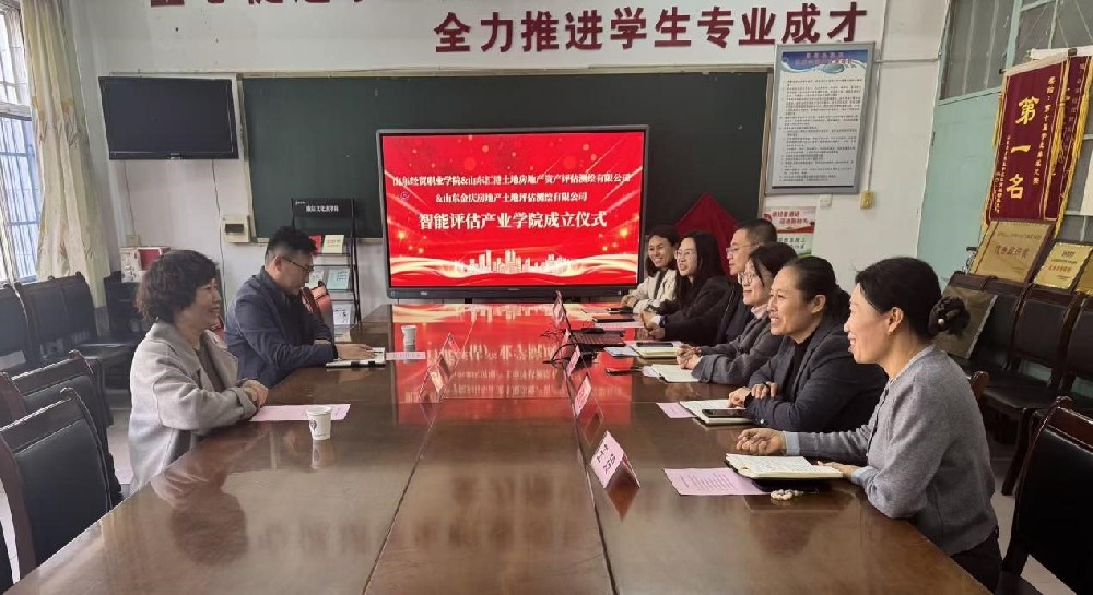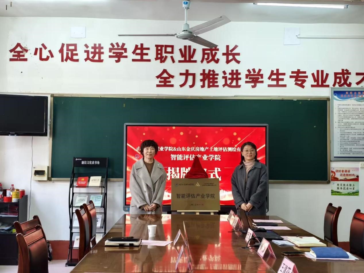 近日,我院资产评估与管理专业携手山东金庆房地产土地评估测绘有限公司、山东汇港土地房地产资产评估测绘有限公司,共同举办智能评估产业学院成立仪式。山东汇港土地房地产资产评估有限公司总经理盛海芸、山东金庆房地产土地评估测绘有限公司行政总监肖杨、教务处副处长綦娜、财政金融系主任王建花、副主任于磊,以及部分骨干教师,共同见证了这一产教融合创新实践的重要时刻。