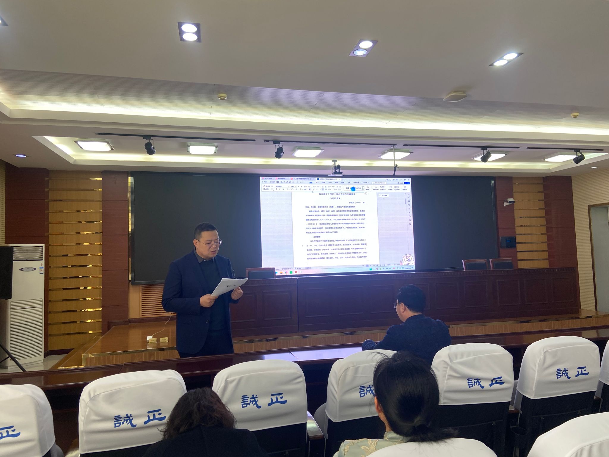 活动中,于磊带领全体教师学习《教育部关于深化职业教育教学关键要素改革的意见》,围绕专业动态调整、课程体系优化、教材建设改革、教师能力提升、实习实训基地建设五大核心改革任务,结合专业建设、人才培养方案修订实际,进一步明确了改革落地的方向与重点要求。