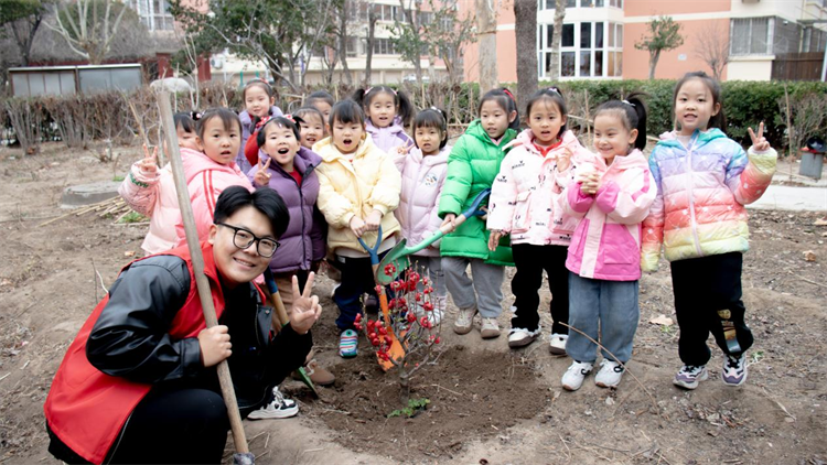 在志愿者的悉心引领下,小朋友们井然有序地前往户外种植区。志愿者们耐心讲解安全注意事项,并亲自示范植树步骤,小朋友们随即分组行动,在志愿者的精心指导下,亲手栽种下一棵棵嫩绿的小树苗,并为它们挂上写有自己名字与美好祝愿的小牌子,脸上洋溢着对小树苗茁壮成长的殷切期盼与对绿色地球的深情厚爱。