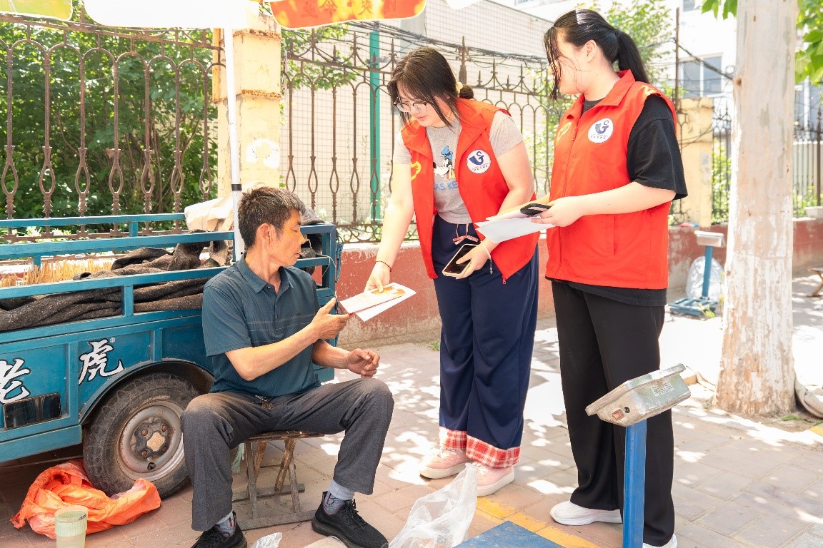 理论学习结束后,志愿者们走进社区,发放诚信主题问卷调查,了解居民对诚信缺失现象的看法。同时,向居民赠送风筝、笔记本等文创小礼品,传递知识与关怀。居民们积极参与,活动现场氛围热烈。
