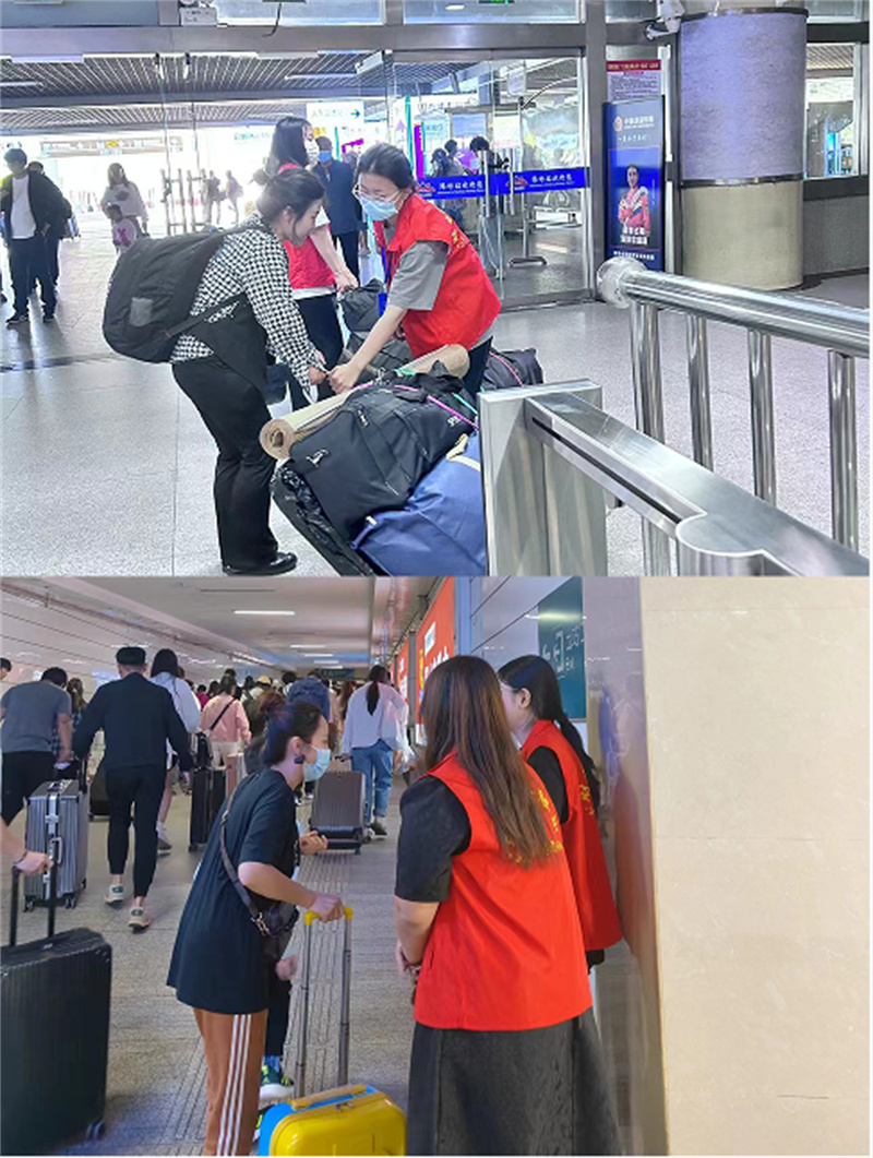 青年志愿者们身着红马甲,分布在进站口、电梯口、售票厅、出站口等区域,为旅客们提供问询指导、秩序维持、行李搬运等服务。他们以暖心的微笑温暖旅客的心,以热情的服务彰显青年志愿者的责任与担当,以实际行动诠释了“奉献、友爱、互助、进步”的志愿服务精神。