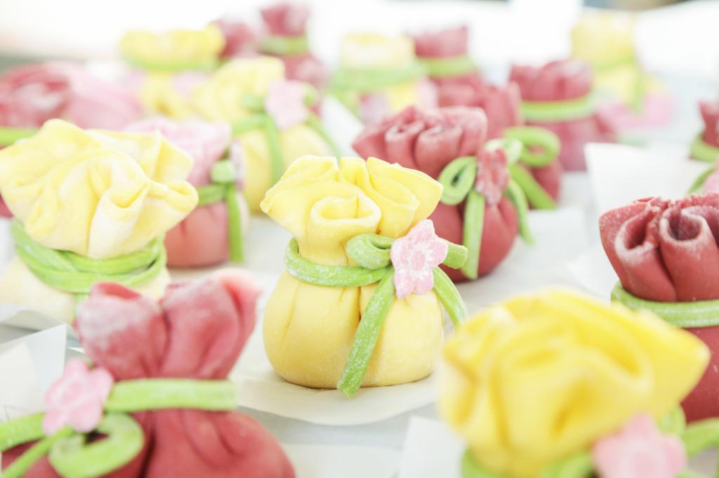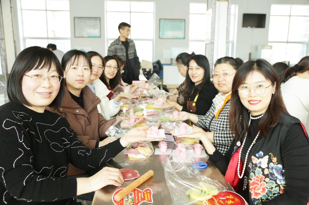 活动得到了学院校企合作企业——山东火山农业科技有限公司的大力支持,为我们提供了纯天然、无添加的原材料。活动现场,非遗传承人为大家演示了玫瑰花、福袋、小元宝等花式面点的制作过程。现场女教职工纷纷投入到面点制作中,以灵巧的双手、巧妙的构思和天马行空的想象力,将手中的彩色面团变成各色花朵、蝴蝶结、飞鸟等面点,尽情享受充满麦香与欢笑的时光。