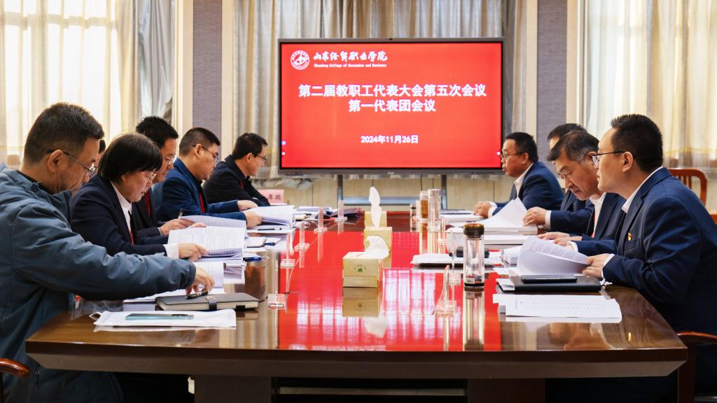 工会副主席张传国宣读了山东经贸职业学院第二届教职工代表大会第五次会议关于通过《山东经贸职业学院职称评聘办法》等三个文件的决议。