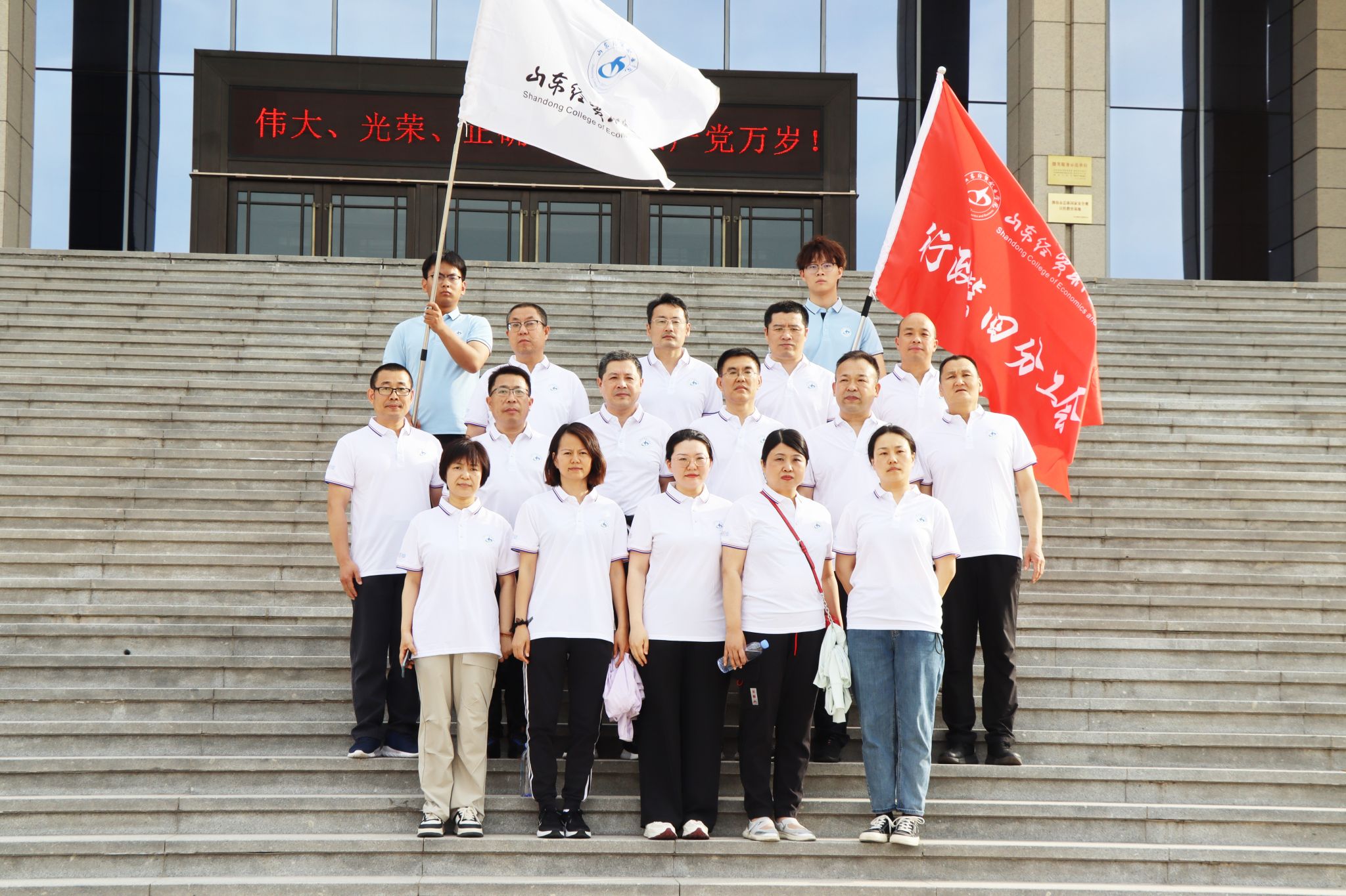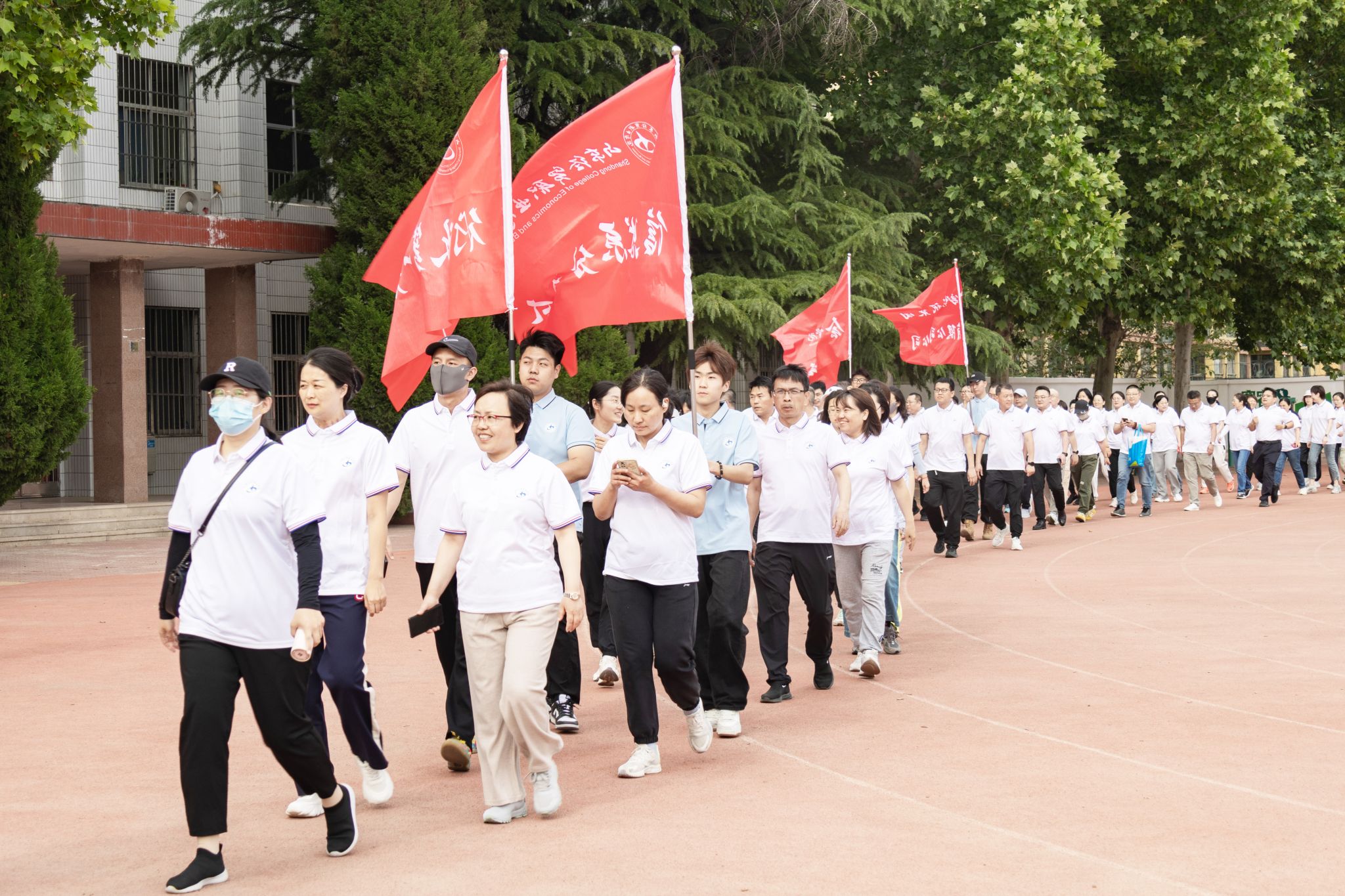 5月15日下午,学院举办“携手同行 团结奋进”第四届教职工健步走活动。八支队伍在体育场集结,装备齐整。