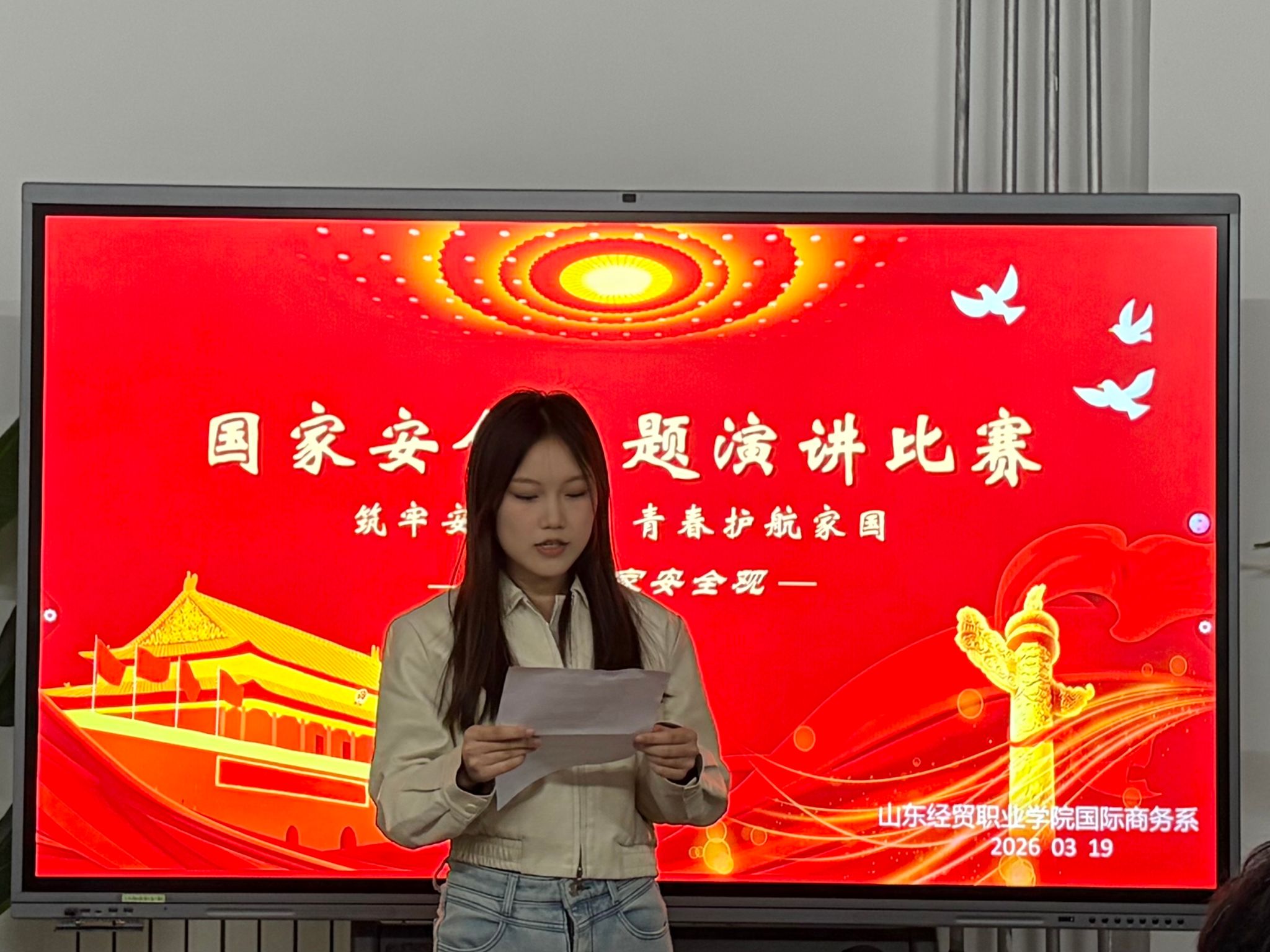 为深入学习贯彻总体国家安全观,厚植青年学子的家国情怀,强化国家安全意识与责任担当,近日,山东经贸职业学院国际商务系精心举办“青春筑防线 国安记心间”一站式社区主题演讲比赛,以青春之声传递安全理念,以青春力量筑牢校园思想防线,为平安校园建设注入蓬勃青春动能。