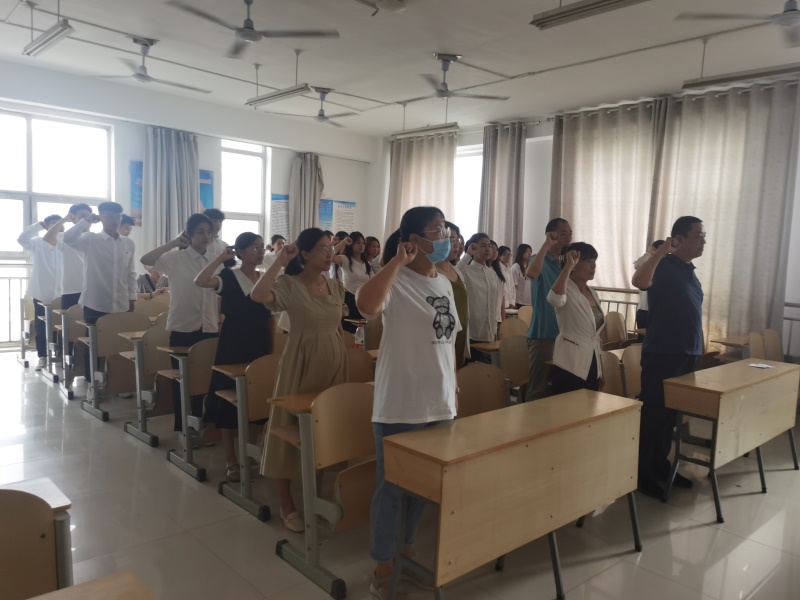 学工党支部组织20名新发展党员开展了集中入党宣誓活动。活动在《国际歌》中拉开序幕,预备党员面对党旗郑重宣誓,许下为共产主义奋斗终身的誓言。宣誓结束后,预备党员代表做了表态发言,表示今后在工作中要更加积极努力,踔厉奋发,勇毅前行,时刻以一名共产党员的身份严格要求自己,奋勇争先,争当表率。