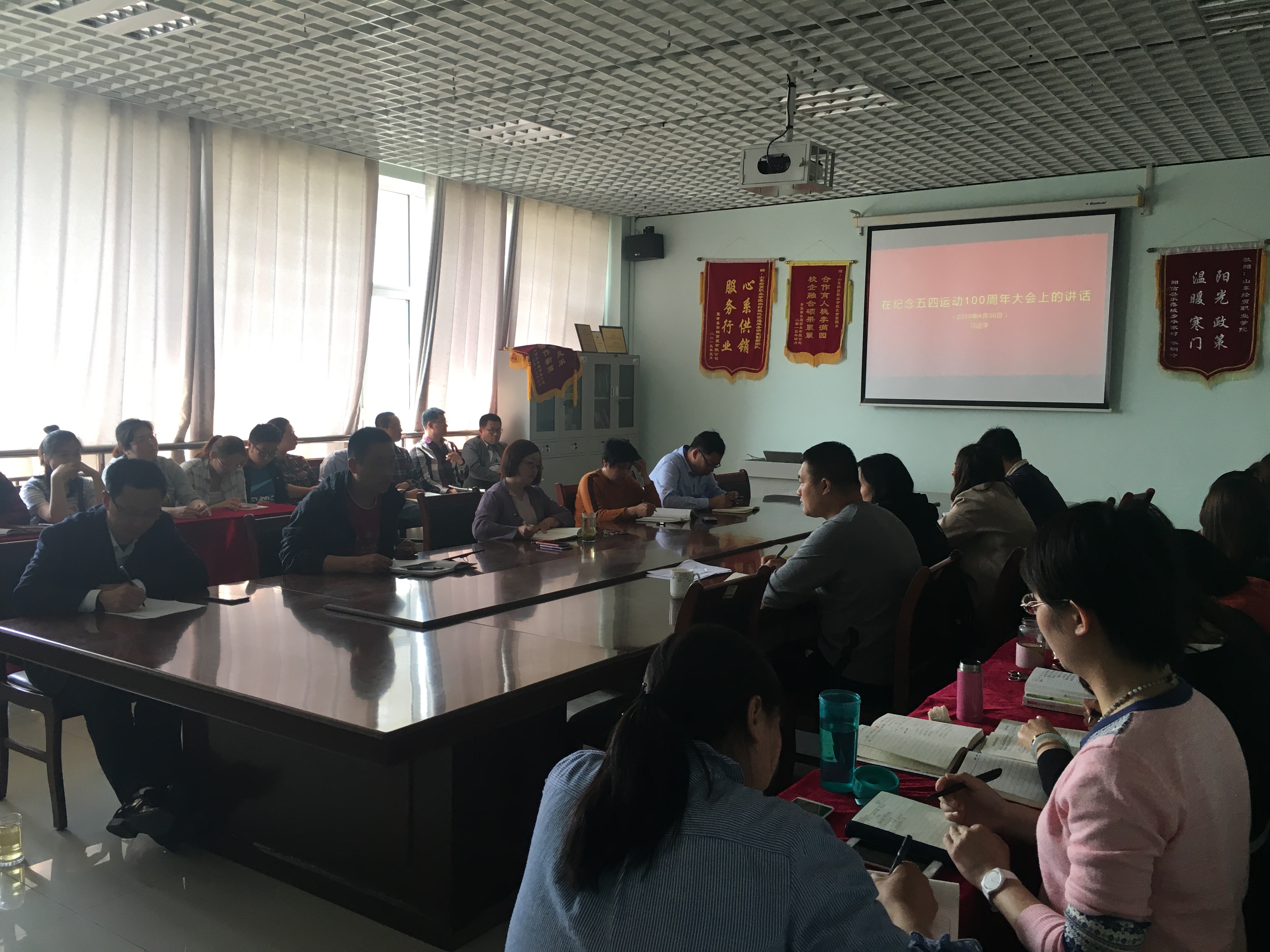 5月7日下午,工商管理系党总支在会议室学习贯彻习近平总书记在纪念五四运动100周年大会上的重要讲话精神,会议由工商管理系党总支书记高巍主持,全体教师参加。