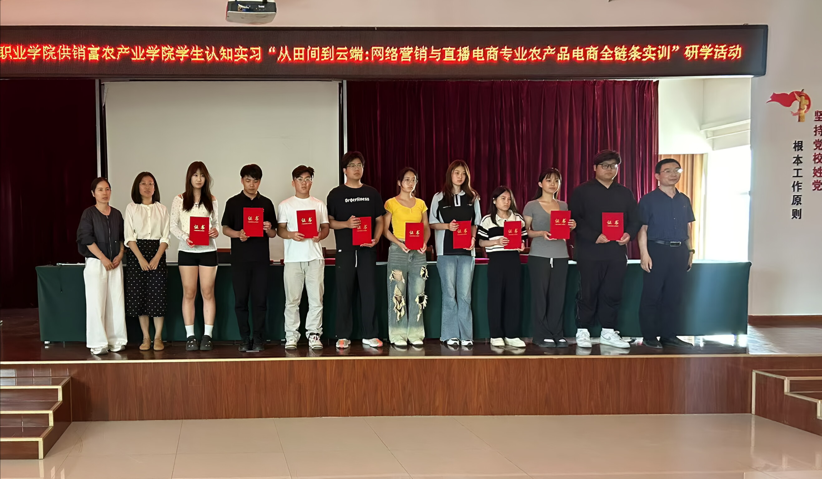 本次研学活动以学院与潍坊供销集团有限公司、山东火山农业科技有限公司成立的供销富农产业学院为依托,主题为“从田间到云端:网络营销与直播电商专业农产品电商全链条实训”。活动期间王庆全代表学院为昌乐火山智慧农业产业园进行了“研学实践教育基地”授牌仪式,并对当前校企合作的重点工作进行了研讨。