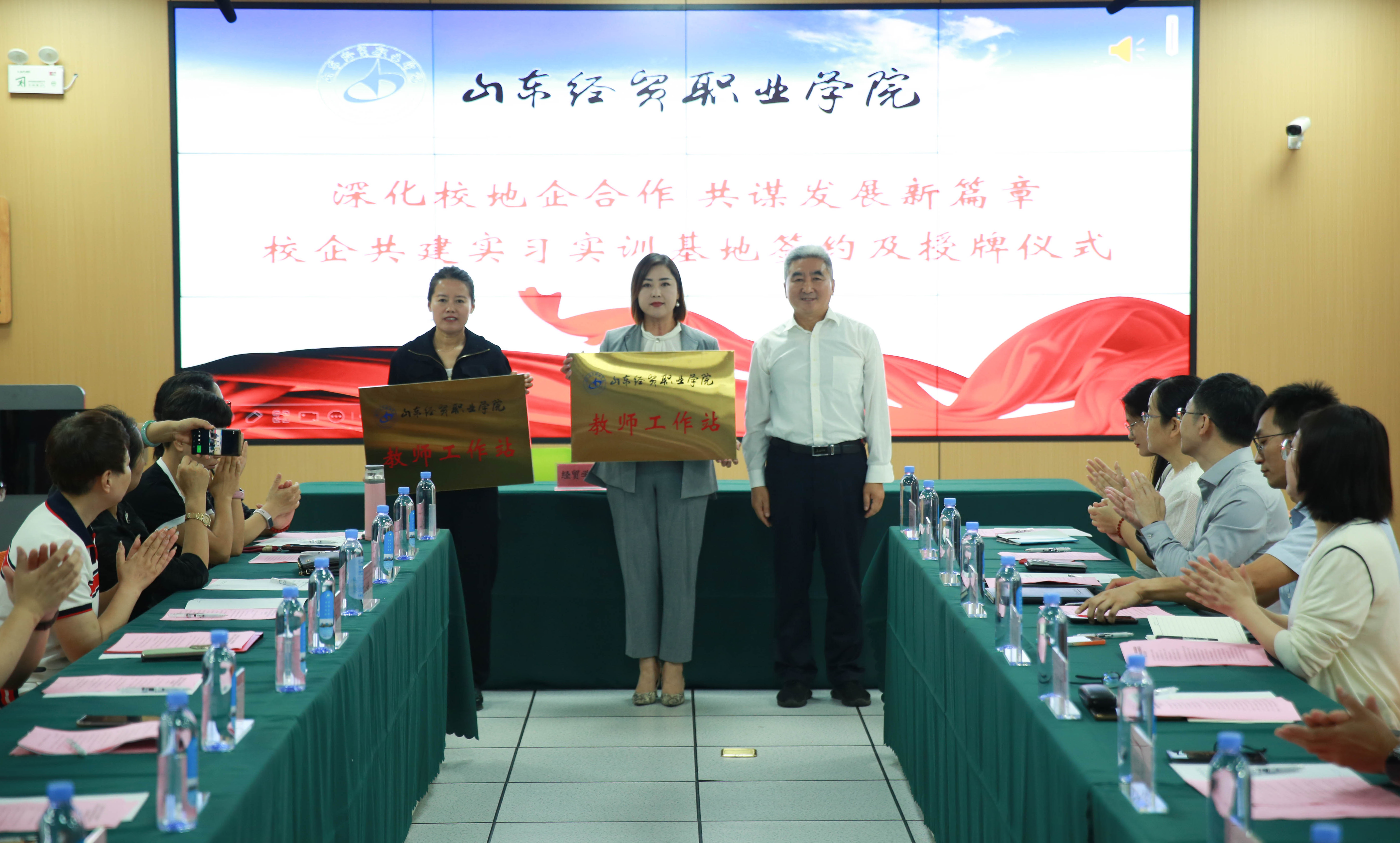 潍坊上农智田农业科技有限公司、潍坊神元生物科技有限公司与学院签订校企合作框架协议书,学院向两家企业授“山东经贸职业学院学生实习实训基地”和“山东经贸职业学院教师工作站”牌匾。