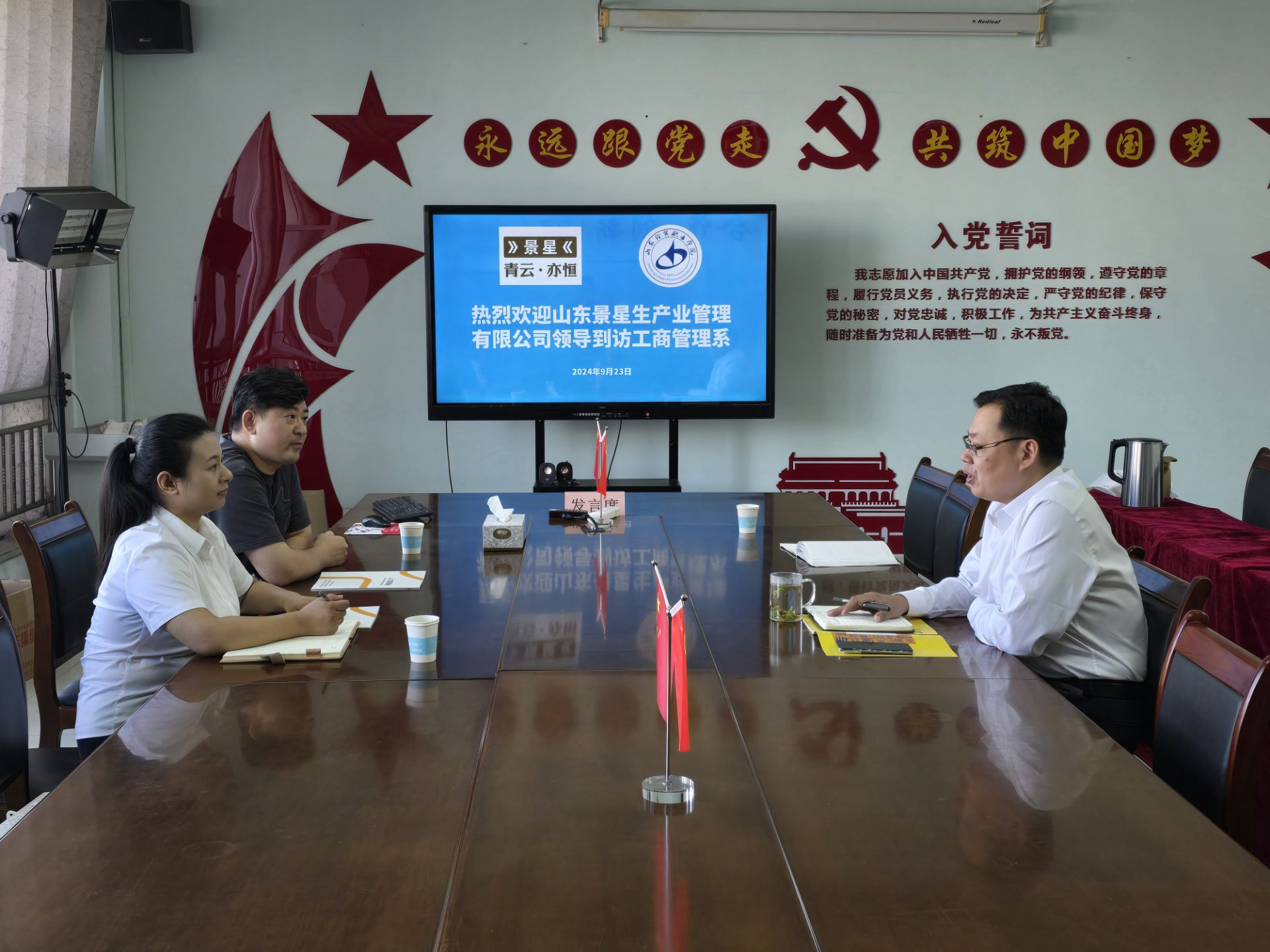9月23日,山东景星生产企业管理有限公司来访,双方经过洽谈,达成校企专业共建、企业人力合规师联合培养等方面的合作意向。