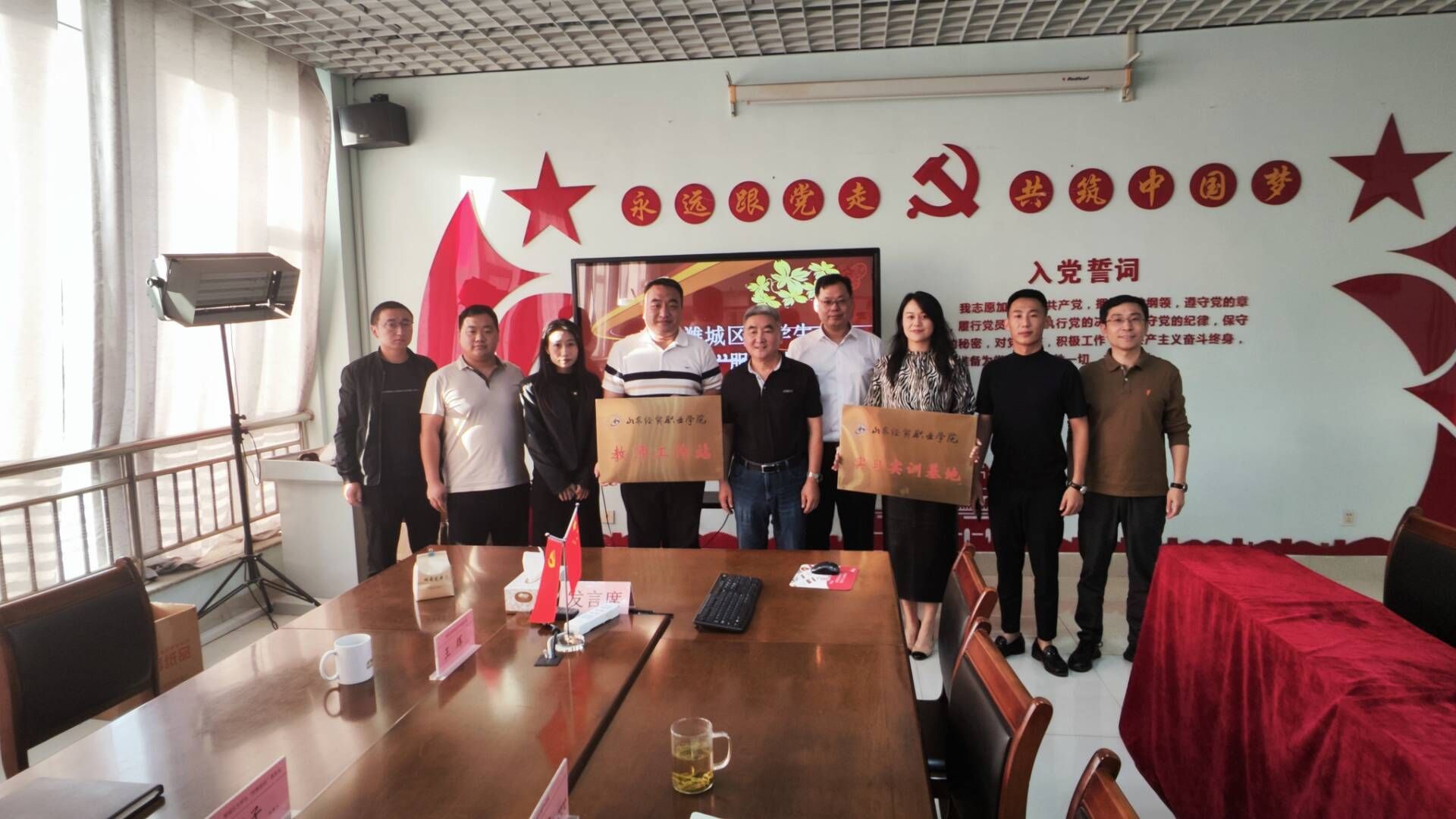 9月23日,潍城区人社局、潍城区大学生“完整就业”服务站组织潍坊猴弟电商有限公司、潍坊云矩网络科技有限公司、潍坊奇迹甄选数字科技有限公司等驻潍城电商企业来访,双方就师资共享、项目化教学、校企合作开发教材、大学生赋能、实习就业达成合作意向,学院向潍城区大学生“完整就业”服务站授“山东经贸职业学院教师工作站”和“山东经贸职业学院实习实训基地”牌匾。