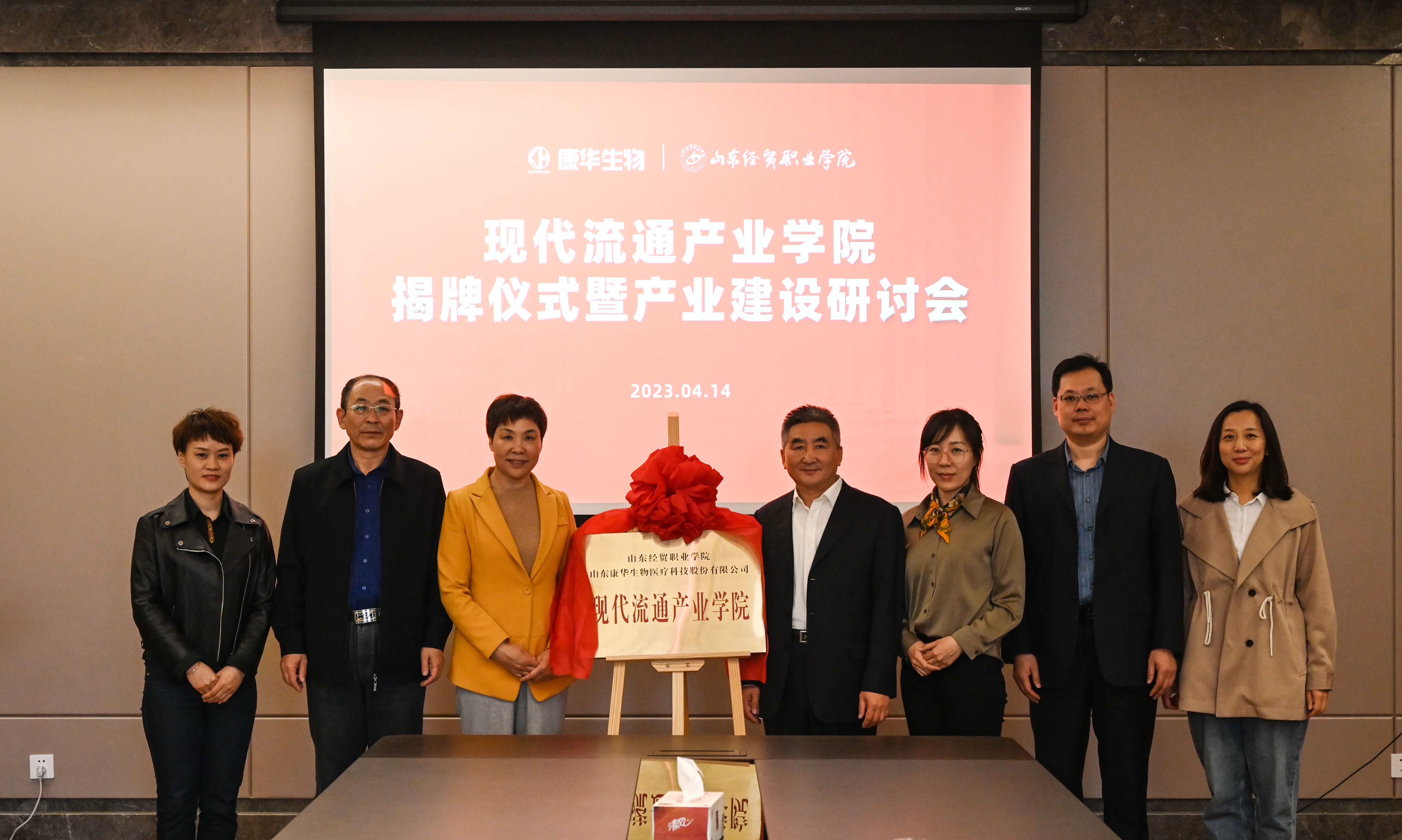 为深入贯彻党的二十大精神,贯彻落实新《职教法》精神,充分发挥企业产业优势,深化产教融合,创新现代流通产业学院建设模式,提升我院现代商品流通类专业人才培养能力,4月14日下午,学院与山东康华生物医疗科技股份有限公司共同举办现代流通产业学院揭牌仪式及学术交流研讨会。