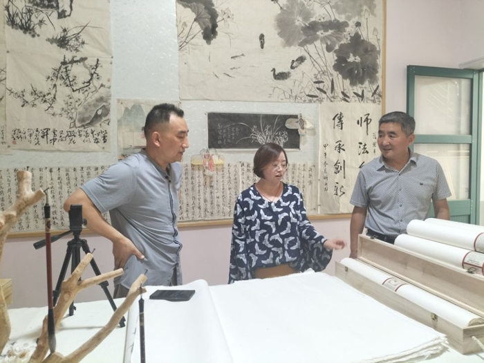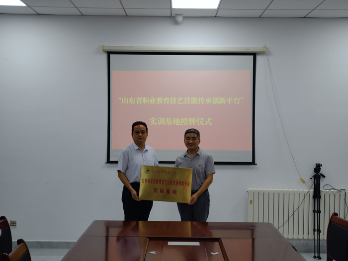项目组考察了临朐县文化艺术中心,与文化艺术中心综合业务科科长夏立庆、非遗保护科长王飞飞、辅导培训科科长郭衡、临朐桑皮纸非物质文化遗产代表性传承人连恩平等进行了洽谈,签订了合作协议,授予临朐县文化艺术中心山东省职业教育技艺技能创新平台实训基地匾牌。双方就校企合作开发相关文创产品、非遗技艺传承、品牌推广等相关项目进行了深入交流。