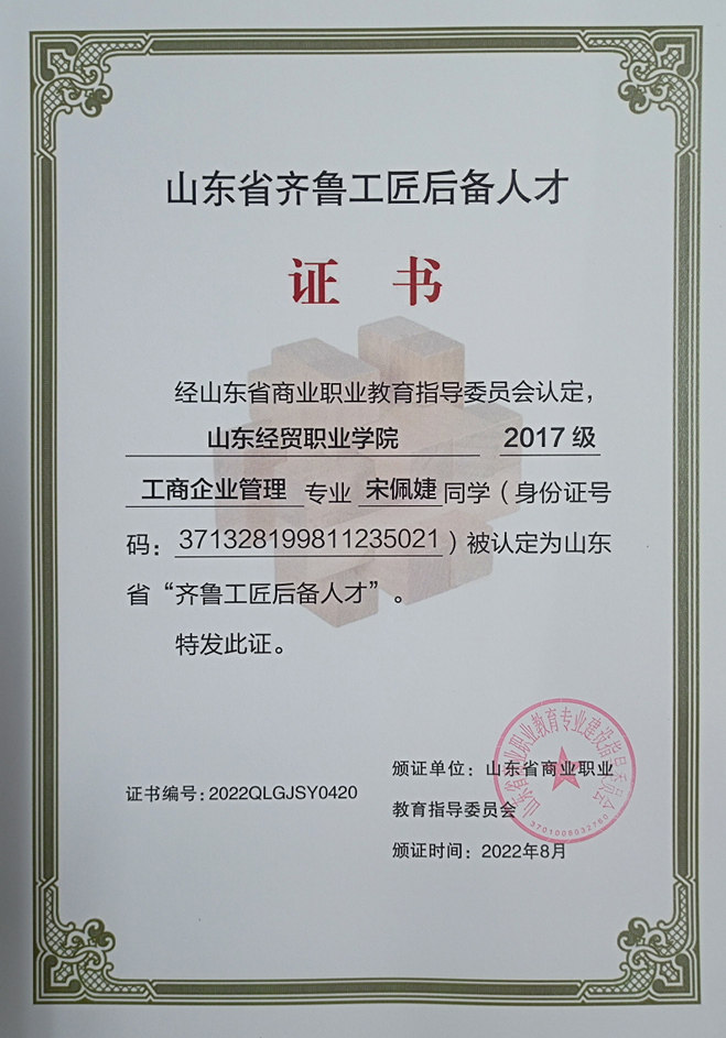 此次学生获得齐鲁工匠后备人才称号,展现了学院人才培养的实力、特色与成果。下一步,工商管理系将进一步密切与专业建设指导委员会联系,在培养定位、专业布局、课程体系、教学模式、资源配备、考核评价等方面探索齐鲁工匠培养路径,优化专业高技能人才培养和考核方案,加强过程监控,培养更多优秀后备人才。
