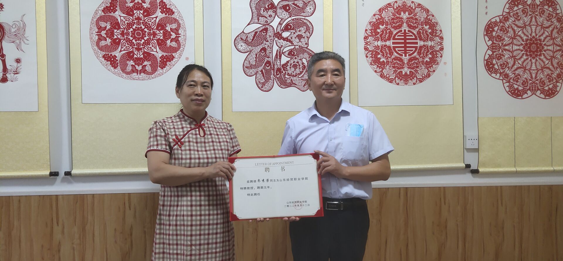 双方就校企合作开发相关文创产品、非遗技艺传承、品牌推广等相关项目进行了深入交流,并授予高密市王树花扑灰年画传习所、高密市齐氏艺术中心山东省职业教育技艺技能创新平台实训基地,聘请王树花、齐秀芳两位山东省工艺美术大师、非物质文化遗产代表性传承人为学院特聘教授。