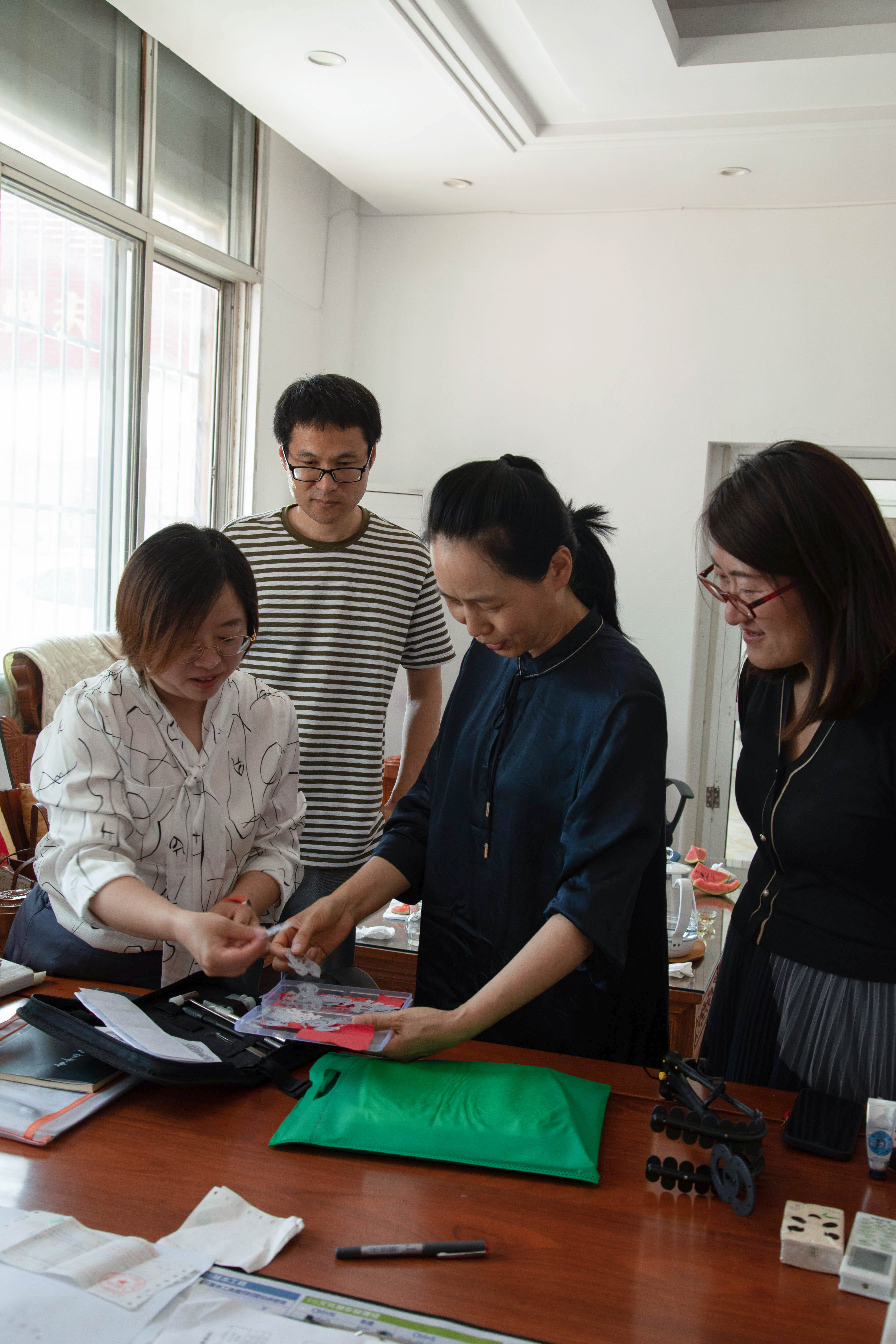 6月1日,山东省职业教育技艺技能创新平台建设团队李逾男教授等师生5人到访山东文华文化传媒有限公司,调研校外实训基地建设与文创产品开发。
