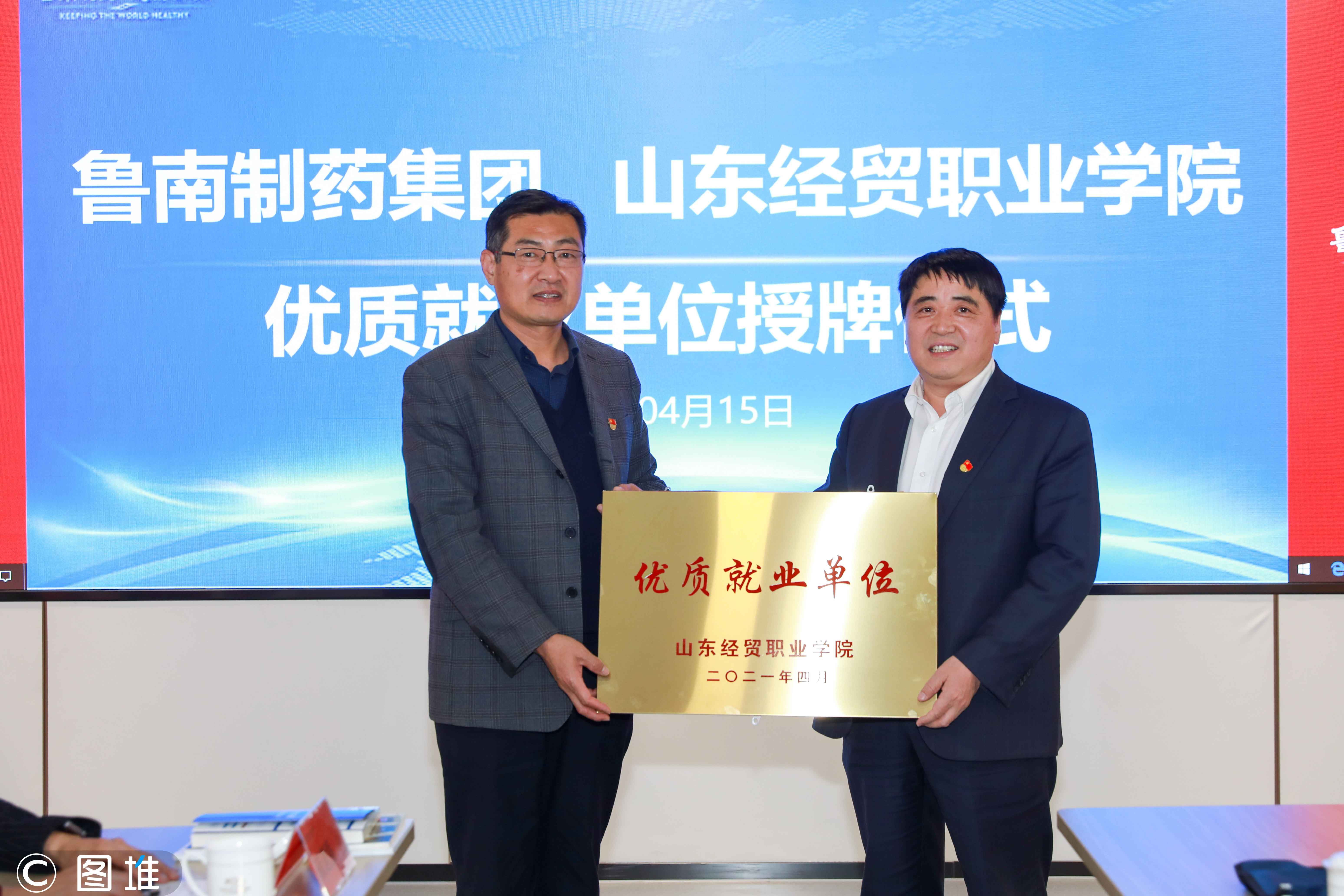 陈卫国副院长一行先后参观了鲁南制药集团物流基地、时代楷模赵志全同志纪念馆、鲁南制药集团展览馆,随后在会议室进行了洽谈。双方就学生实习、就业、招生、订单班组建等方面进行了详细的商讨,并达成了初步的合作方案。最后,陈卫国副院长向鲁南制药集团赠授了“山东经贸职业学院优质就业单位”的铜牌。