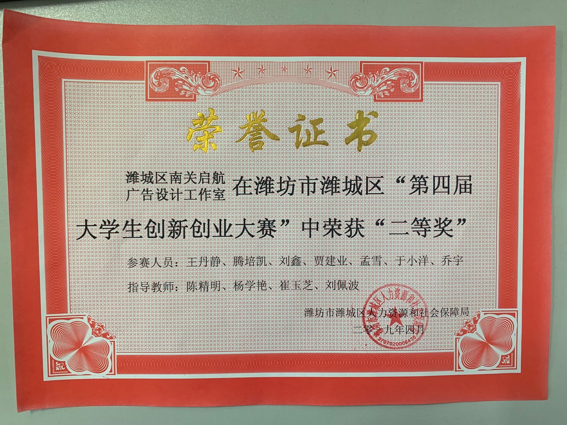 近日,由工商管理系教师指导的创业项目“潍城区南关启航广告工作室”,参加了潍城区第四届大学生创新创业大赛暨“优秀创业大学生”评选活动,获“二等奖”、“文化传承奖”、“优秀创业大学生”三个奖项。