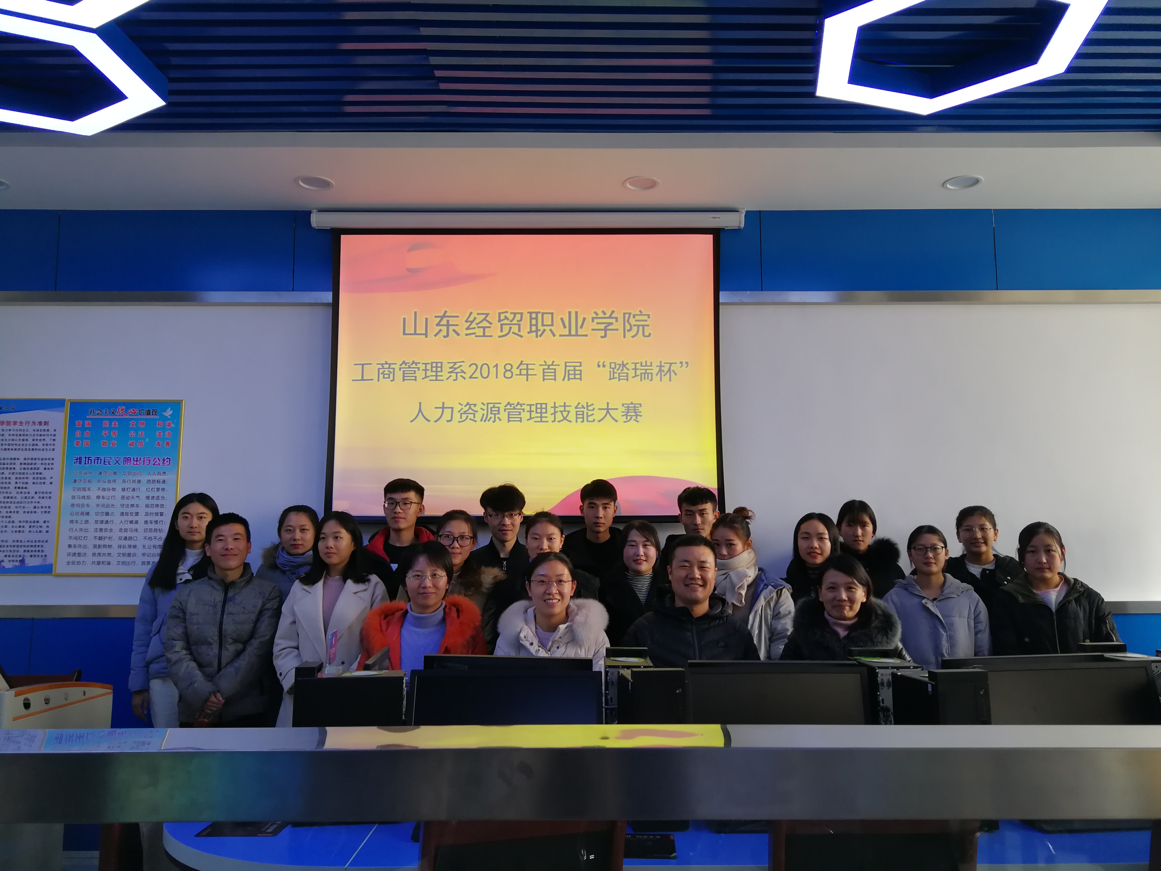 12月11日,工商管理系人力资源管理技能大赛校内预选赛落下帷幕,比赛采用系统模拟对抗形式,全面考察参赛团队进行人力资源规划、招聘、绩效考核、薪酬管理等的数据分析及经营决策能力。