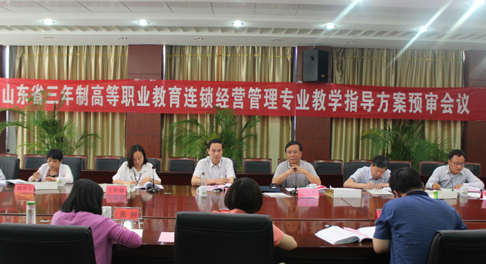 我院工商管理系主任李逾男从项目建设基础、项目立项及团队组建、人才培养模式和课程体系改革调研、各项标准制定等方面做了山东省三年制高等职业教育连锁经营管理专业教学指导方案开发情况汇报。