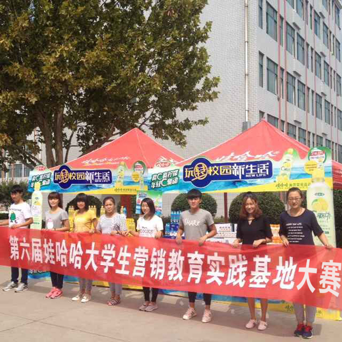杭州娃哈哈集团组织的2015年度下半年娃哈哈市场营销教育实践大赛主题为“第六届娃哈哈全国大学生创业营销实践大赛”。大赛包含策划方案及促销实战大比拼两个环节,参赛团队前期通过组队、寻找指导老师等途径完成策划方案的编写,然后,学生通过按照本团队制定的策划方案,进行创业营销实战大比拼。为给参赛学生提供促销实战的平台,提升促销实战成绩,工商管理系将组织四场校园促销赛。