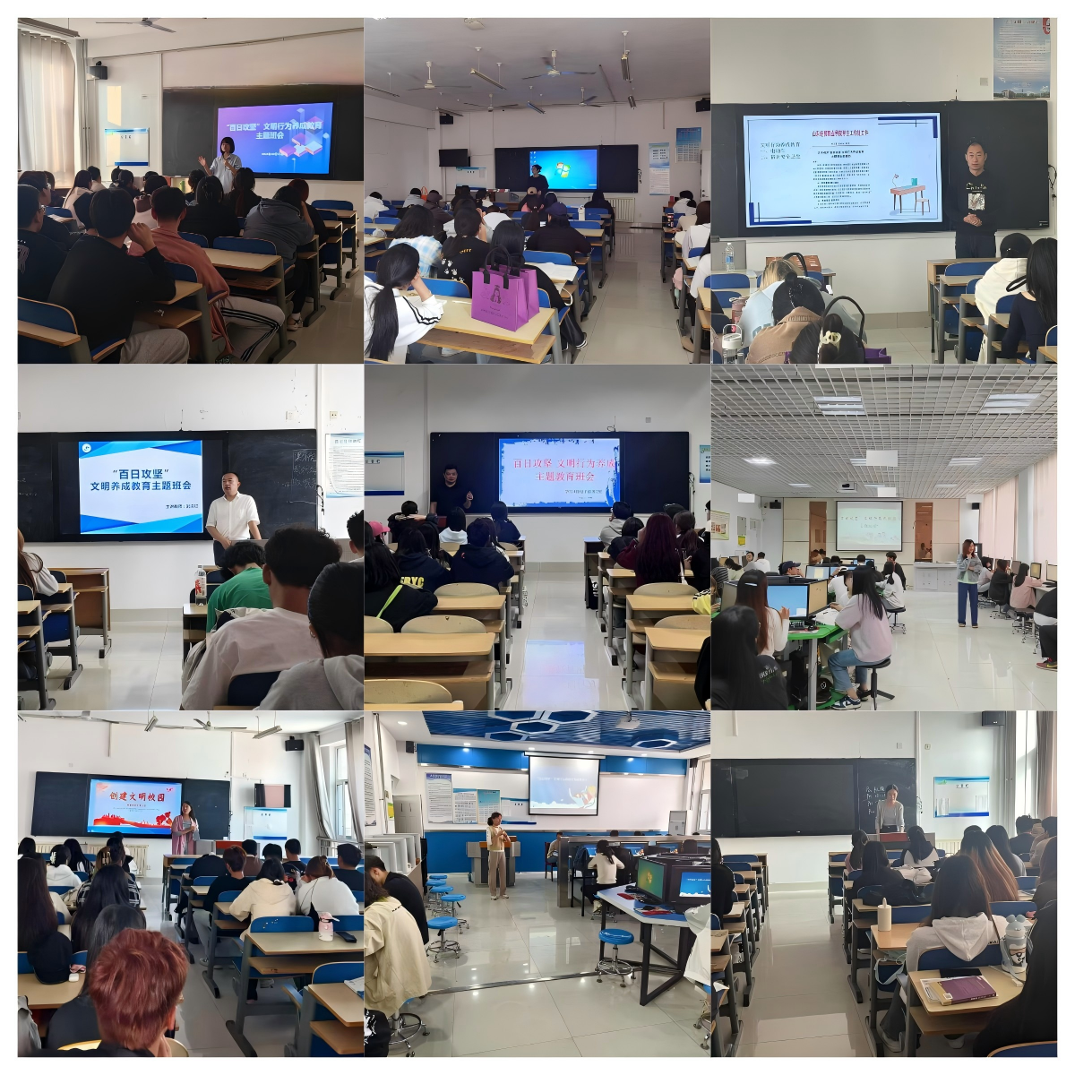 全体辅导员精心策划、周密组织,通过生动的案例和深入浅出的讲解,向学生们强调了学院开展百日攻坚,文明行为养成教育活动的重要意义。带领学生深入学习了《山东经贸职业学院学生文明行为规范》《山东经贸职业学院学生管理规定》等一系列规章制度,学生们积极参与讨论,纷纷表示将以实际行动践行文明理念,从自身做起,从小事做起,共同营造文明和谐的校园环境。
