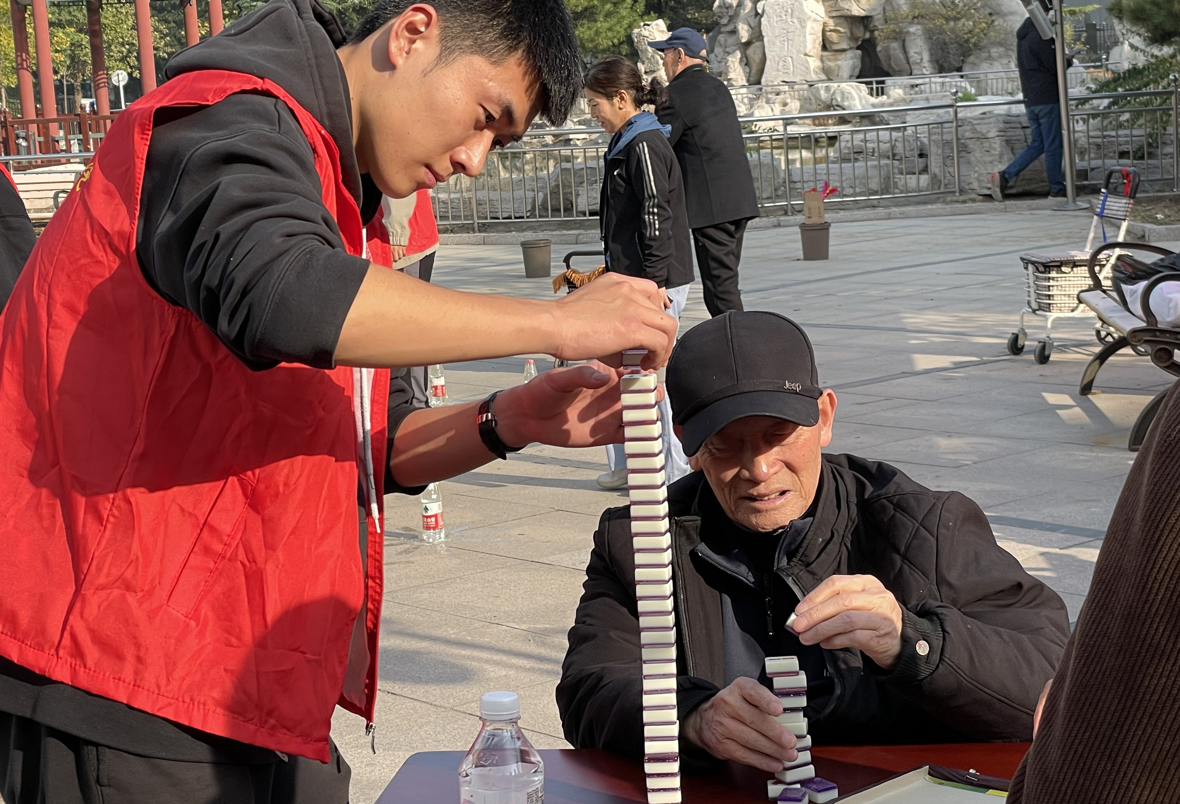 本次运动会设置了“拍”球、套圈、丢沙包、摞麻将、你比我猜等比赛项目,老人们神采奕奕,个个沉浸其中,似乎忘记了年龄,玩得兴高采烈,重拾童年乐趣,似乎穿越到了孩童时光。志愿者们不辞辛苦、各司其职,保证了此次运动会的顺利开展,赢得了老人和中心工作人员的充分肯定。