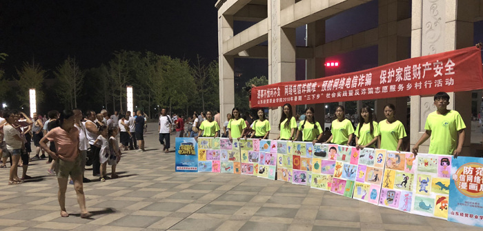 开展“防范电信网络诈骗宣传”志愿服务活动。师生在安丘青云山广场及周边村庄集市等人流密集场所,通过悬挂条幅、“防范电信网络诈骗漫画展”、发放防范电信网络诈骗宣传资料、反诈骗主题签名等方式开展系列主题宣传教育活动,受到了当期群众的热烈好评。