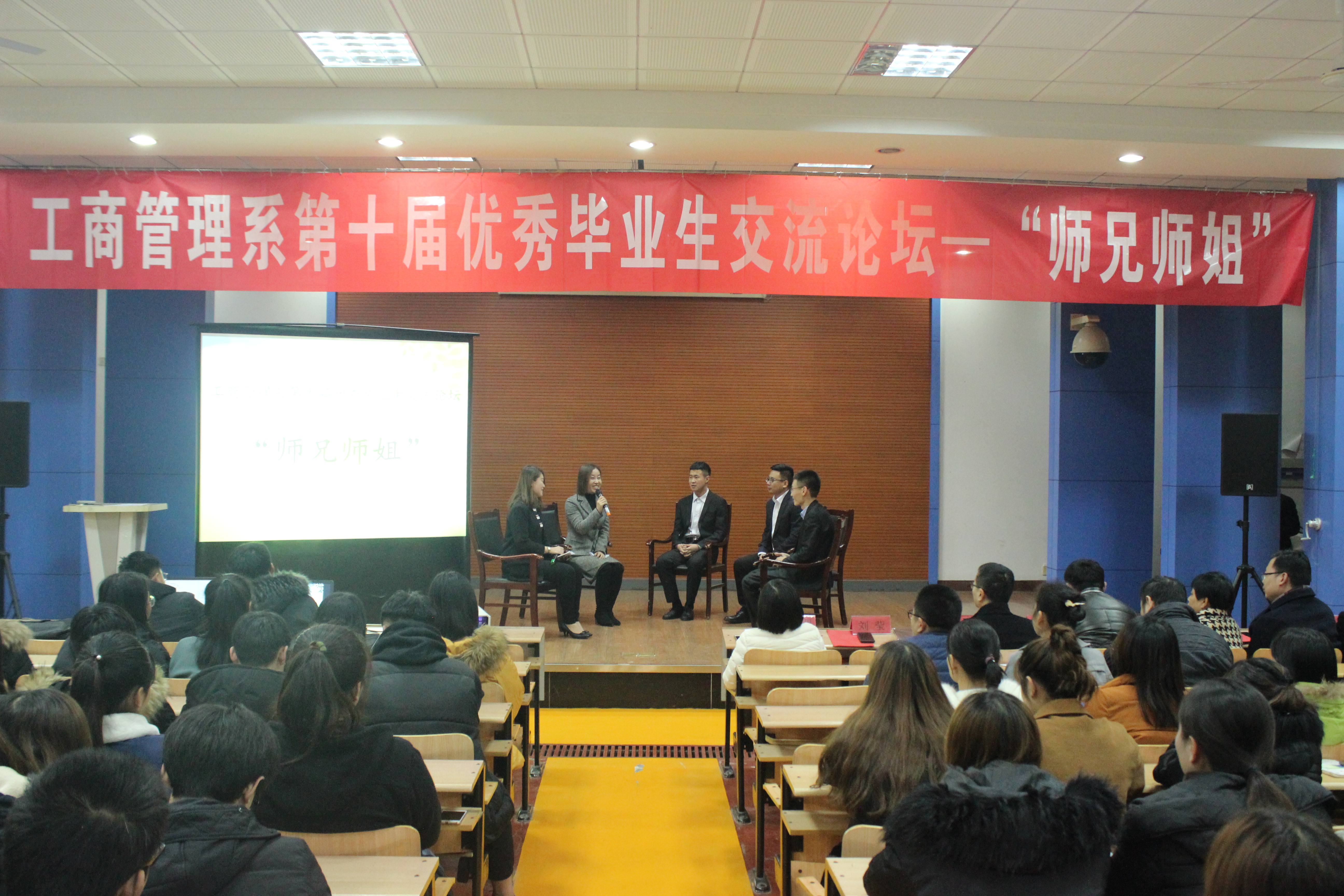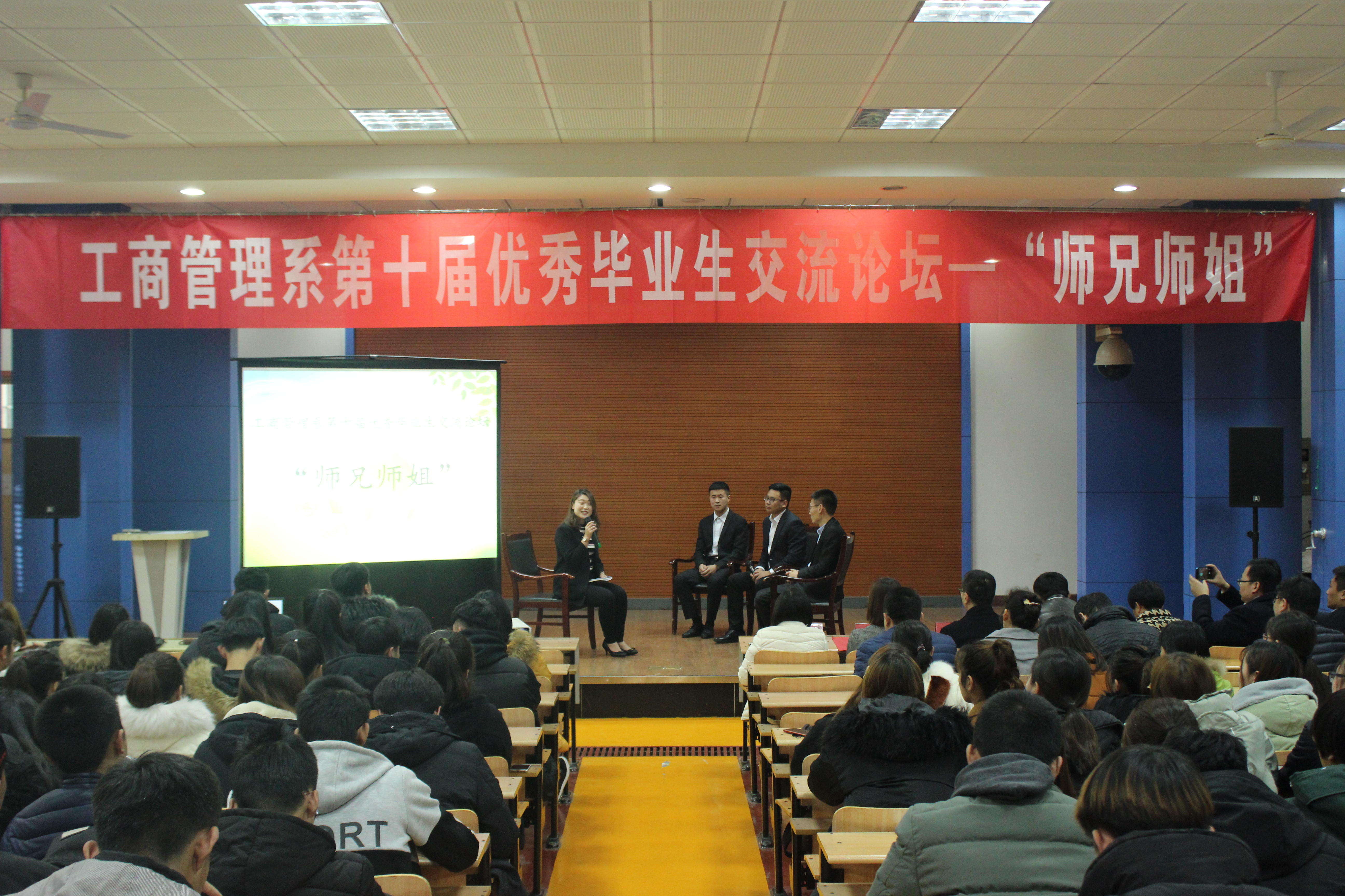 工商管理系优秀毕业生交流论坛“师兄师姐”对话活动已连续举办十届,通过优秀毕业生与在校大学生的交流,引导在校学生树立正确的成才观和就业观,热爱所学专业,树立长远职业理想,展示了优秀毕业生风采和反哺精神。