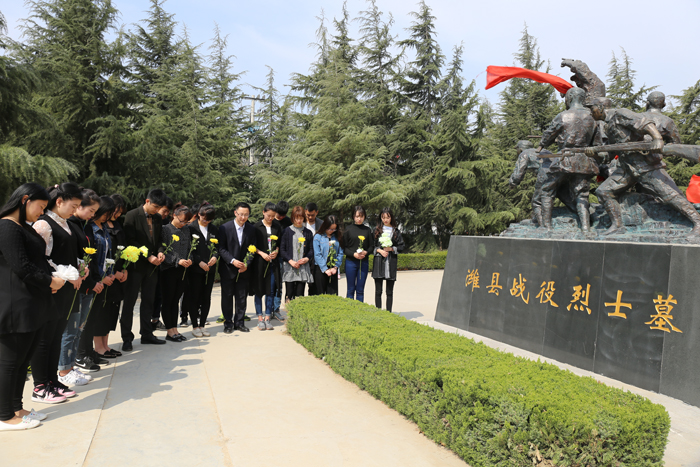 春雨杏花满清明,追思犹怨水烟轻。在清明节即将到来之际,4月1日上午,工商管理系部分学生在学生科长潘玉波、辅导员王明老师的带领下前往潍坊市烈士陵园开展了主题为“缅怀革命先烈,弘扬民族精神”的祭扫烈士墓活动。