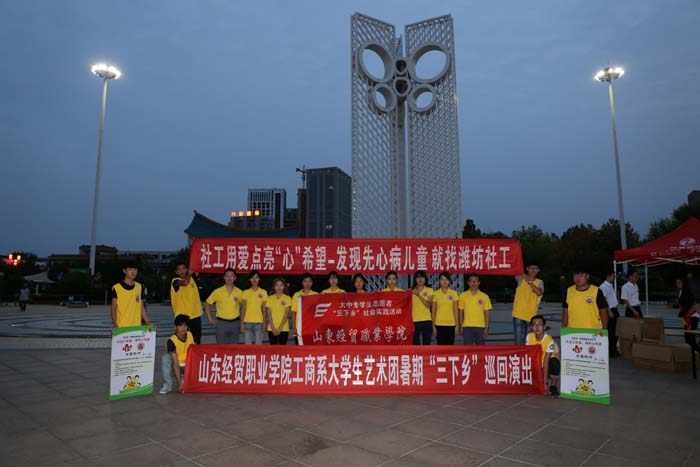 会上,系团总支书记潘玉波以“传递正能量,播种新希望,勇于担当,甘于奉献”为主题对201 5年工商管理系暑期社会实践工作做了系统总结:为了引领广大青年学生按照习近平总书记关于“勤学、修德、明辨、笃实”的“八字真经”要求,树立和践行社会主义核心价值观,贯彻落实山东省教育厅积极组织开展大学生志愿者暑期文化科技卫生“三下乡”社会实践活动的文件精神,2015年暑假期间,工商管理系青年志愿者在潍坊市区、高密、寿光、青州、安丘、昌乐、诸城等十几个县市区的学校、车站、文化广场、商场超市、农贸市场等地,通过发放宣传单页、悬挂条幅、张贴展板,利用互联网、微信朋友圈、QQ群等形式宣传由潍坊市社工协会和潍坊好人网联合发起,由山东经贸职业学院团委、工商管理系团总支承办的“社工用爱点亮心希望——寻找患有先心病儿童”大学生暑期“三下乡”社会实践活动。志愿者们走进贫困乡村,组织开展了帮扶农民工子女的义务支教活动,给留守儿童送去了学习用品、食品及体育器材等生活用品,过开展教学活动、励志成才及安全知识讲座,帮助孩子们树立“好好学习,走出农村,实现梦想”的信心。艺术团的志愿者们通过开展歌舞、指压板跳绳、拔河比赛、同心鼓击球等丰富多彩的文体活动,与孩子们进行互动交流,达到寓教于乐的目的,为潍坊地区的教育事业贡献了一份微薄之力。志愿者们不怕苦、不怕累,无私奉献的精神深深地感动了当地的群众,受到了大家的热烈欢迎,达到了非常好的宣传效果。期间,潍坊市社工协会副会长王钧、潍坊市社工协会秘书长张新民等领导先后两次到活动现场宣讲爱心医疗知识,对工商管理系志愿者们的优异表现给予了高度评价和赞扬。潍坊日报和潍坊好人网对本次活动进行了跟踪报道。
