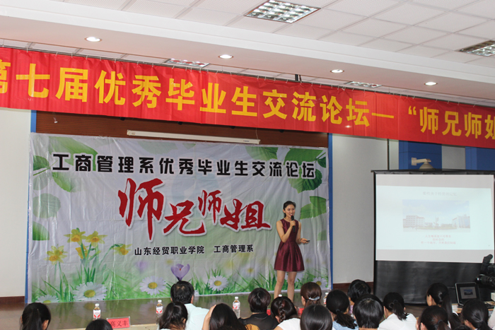6月30日,工商管理系举行第七届优秀毕业生交流论坛——“师兄师姐”对话节目,学院交流合作处处长刘莹,招生就业处副处长刘瑞荣,工商管理系主任李逾男、党总支书记高巍、副主任魏翠芬等出席,工商管理系2014级全体学生及教师代表参加了活动。