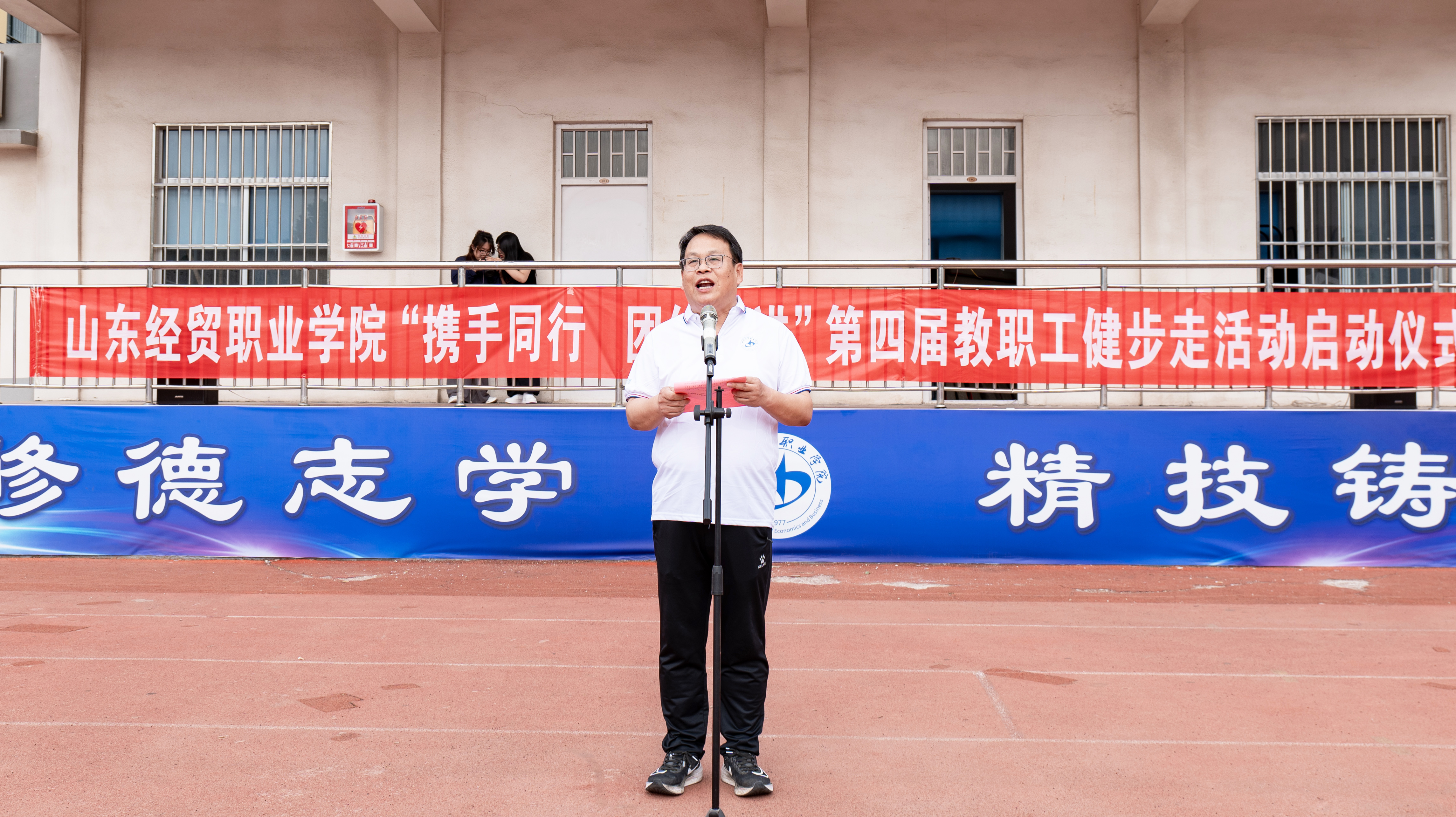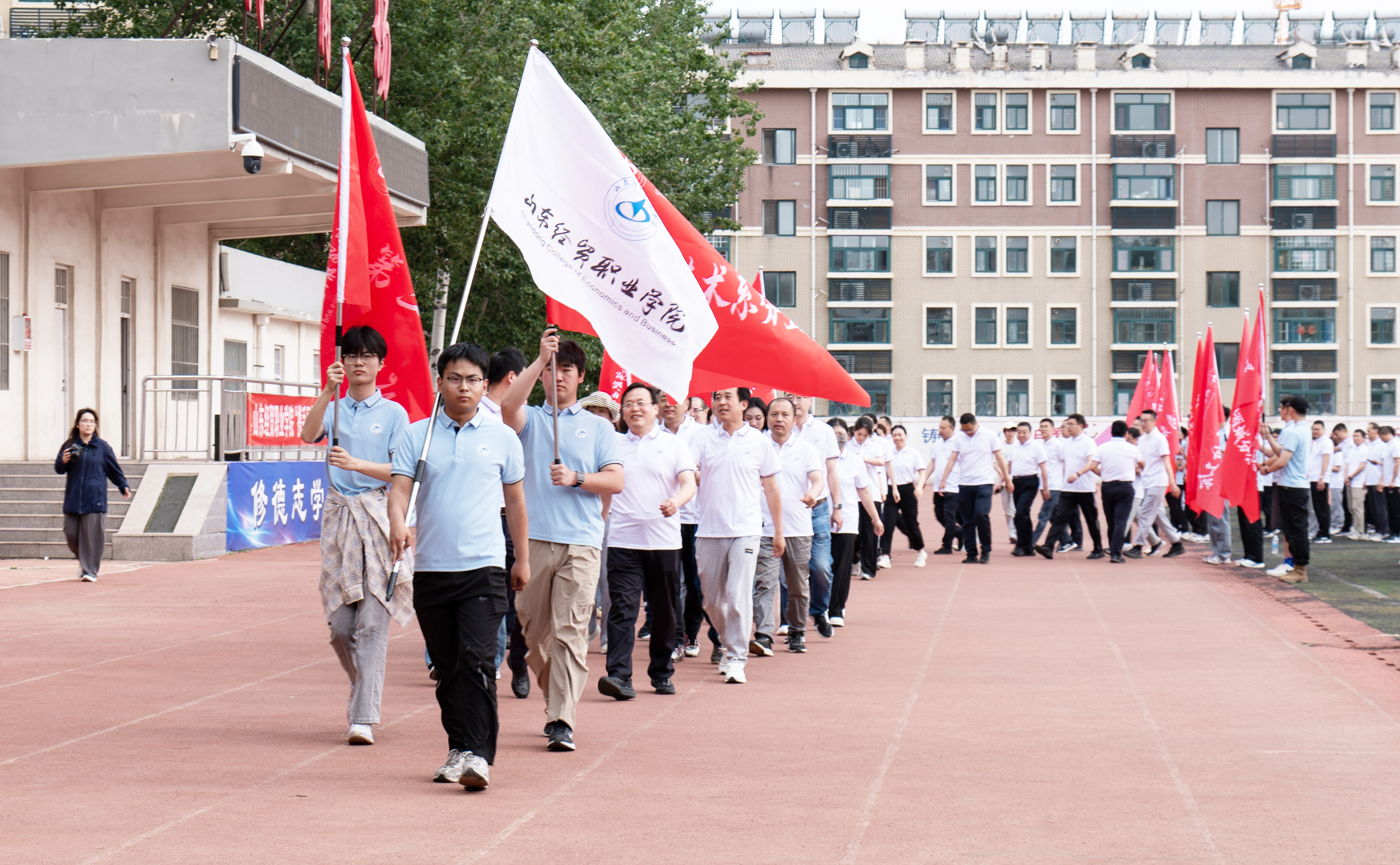 5月15日下午,学院举办“携手同行 团结奋进”第四届教职工健步走活动。八支队伍在体育场集结,装备齐整。