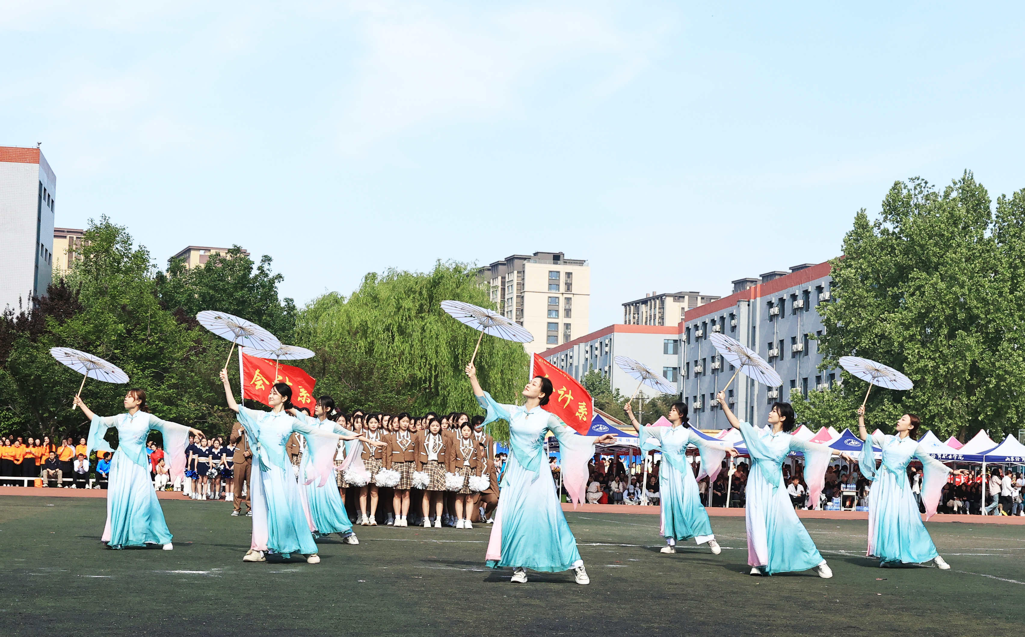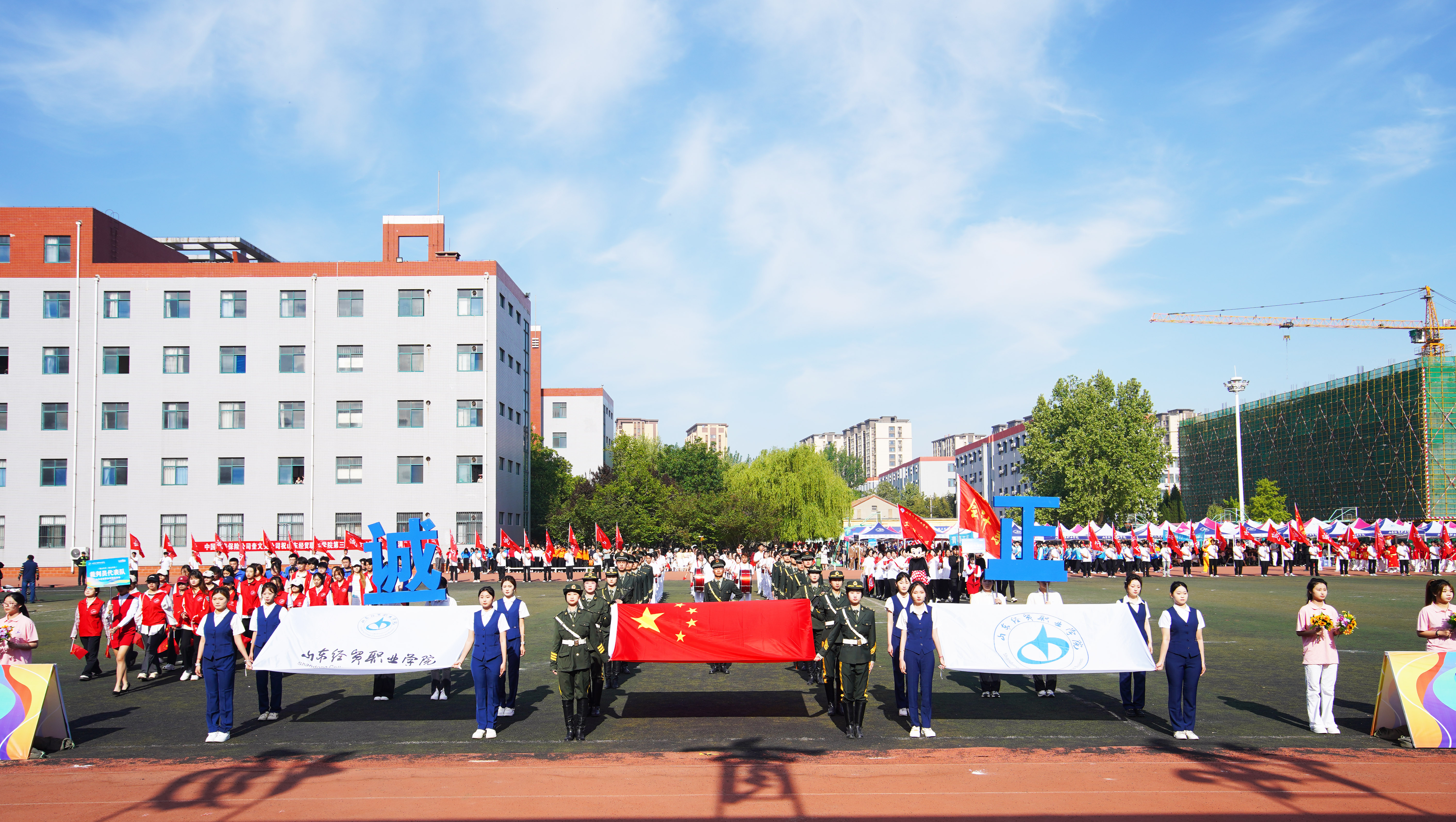国旗护卫队、花束队、校旗队、校徽队及运动员、裁判员代表队等依次入场,展示了学院师生昂扬向上、朝气蓬勃的风采。