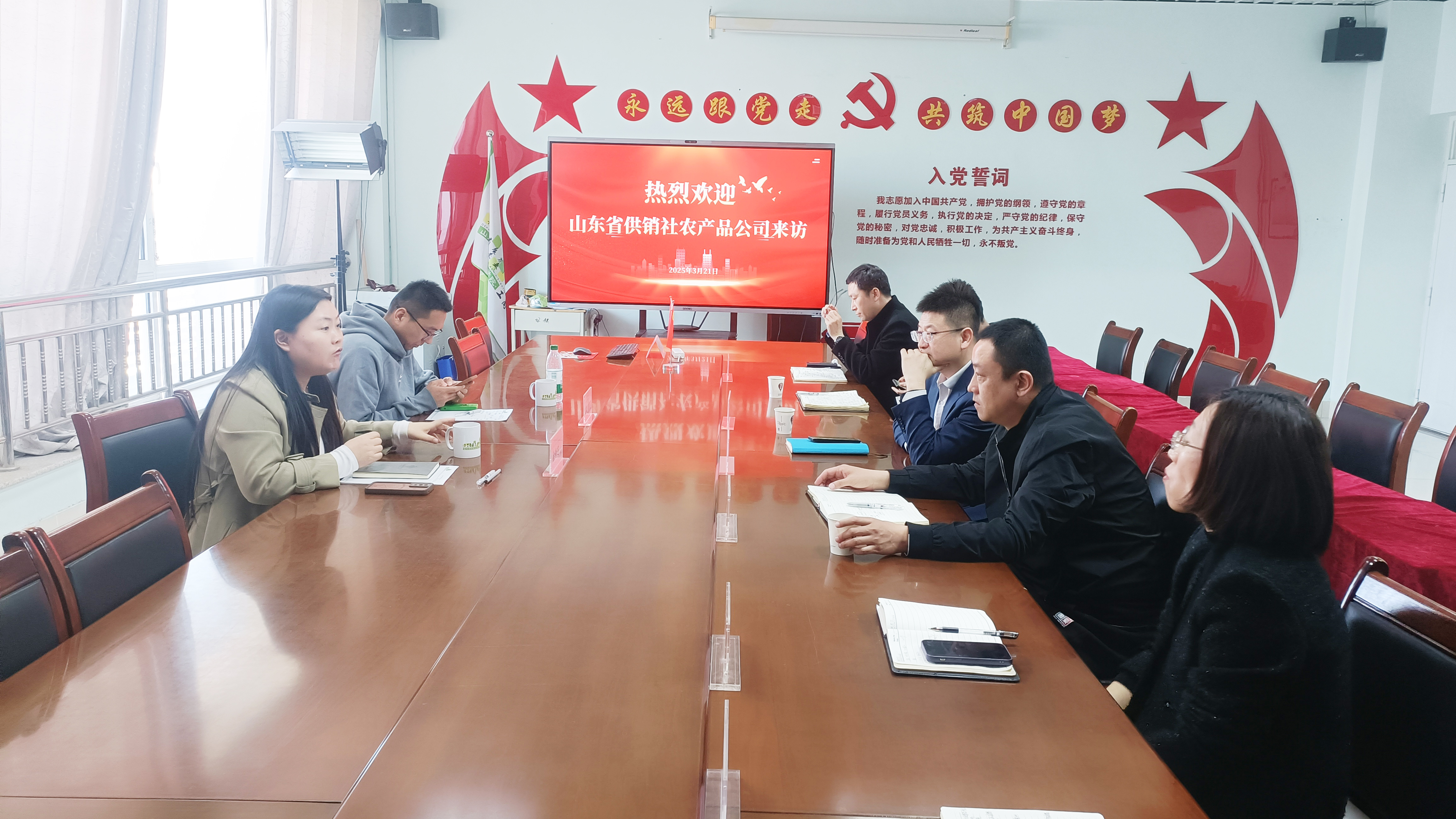 3月21日,山东省供销社农产品有限公司总经理徐新芝一行到访学院,就校企合作、直播间建设及电商运营等开展座谈交流。学院副院长张强,工商管理系党总支书记高巍,相关专业教师参会。