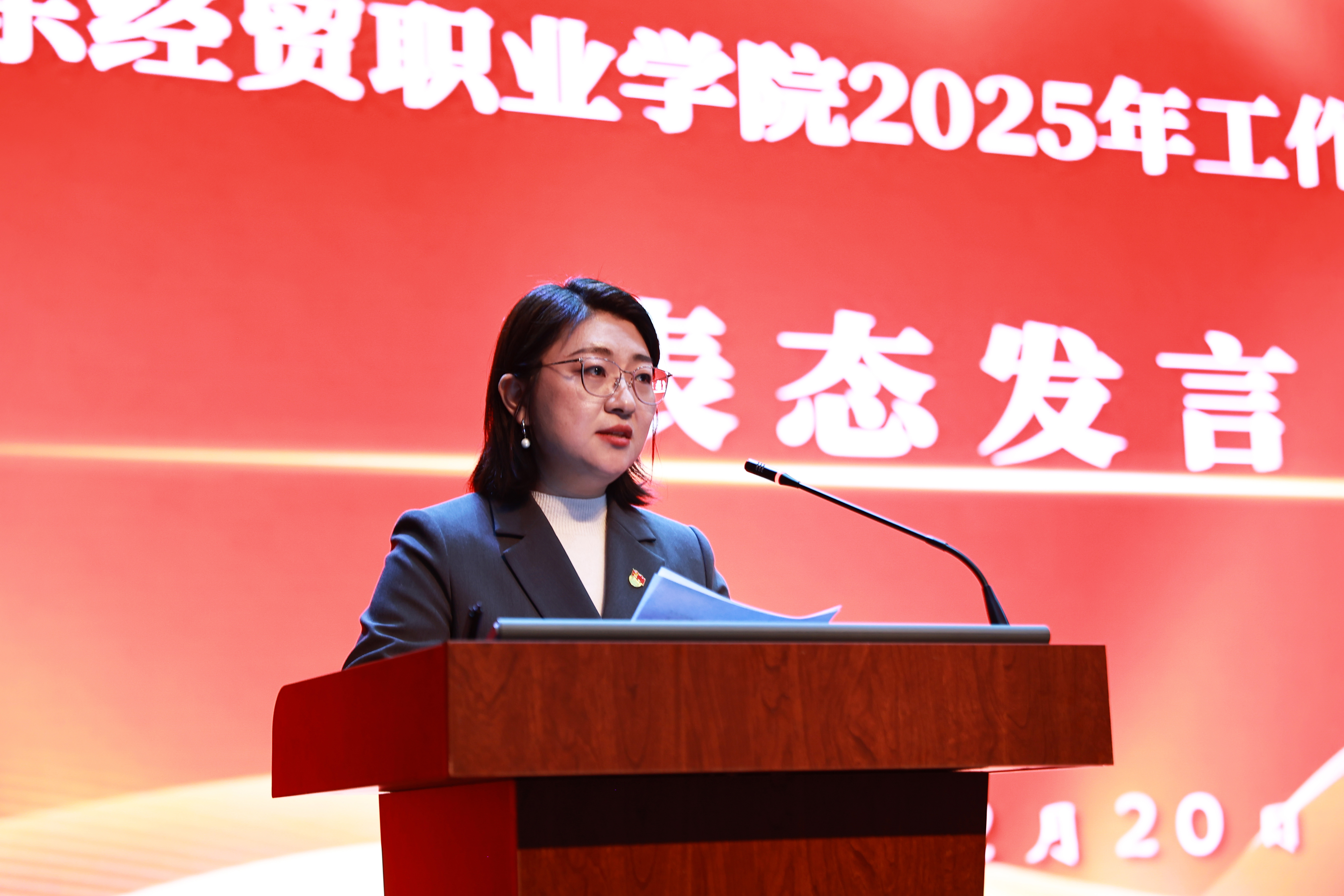 她强调,2025年,是面向十年建成教育强国全面布局、高位推进之年,是各项重大任务攻坚落地的关键之年。要牢牢把握进位争先的总要求和职业教育发展的方向和规律,以学生为中心,以改革破解难题,不断推动理念思路创新、体制机制创新、方法手段创新。要把握“党建引领”的总方向,以高质量党建引领业务高质量发展。要锤炼“实干担当”硬作风,以实绩推动学院上台阶、上层次。要锻造“能力素质”强队伍,不断提升学院的教学水平和科研实力。要筑牢“安全稳定”硬屏障,以高水平安全保障学院事业高质量发展。