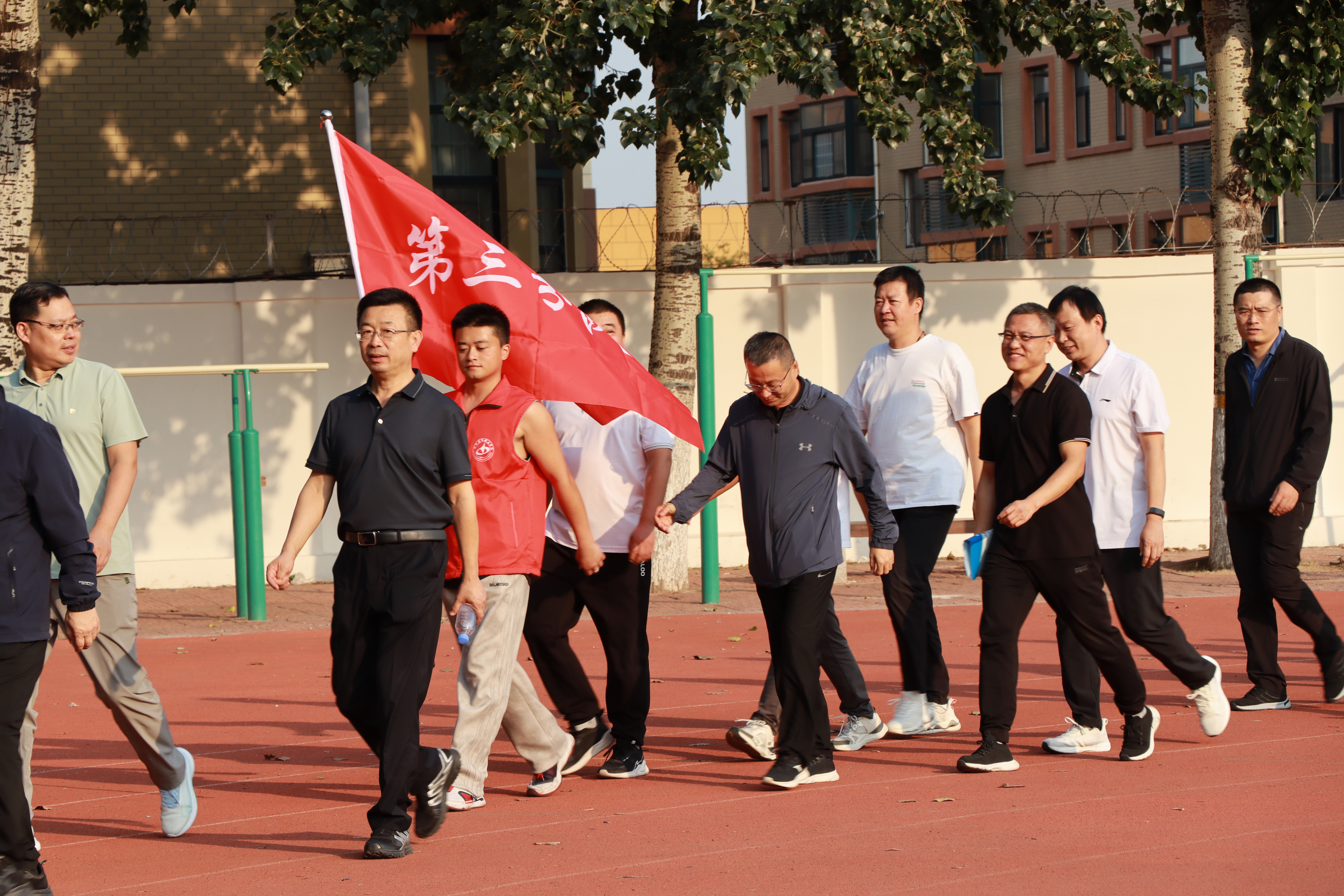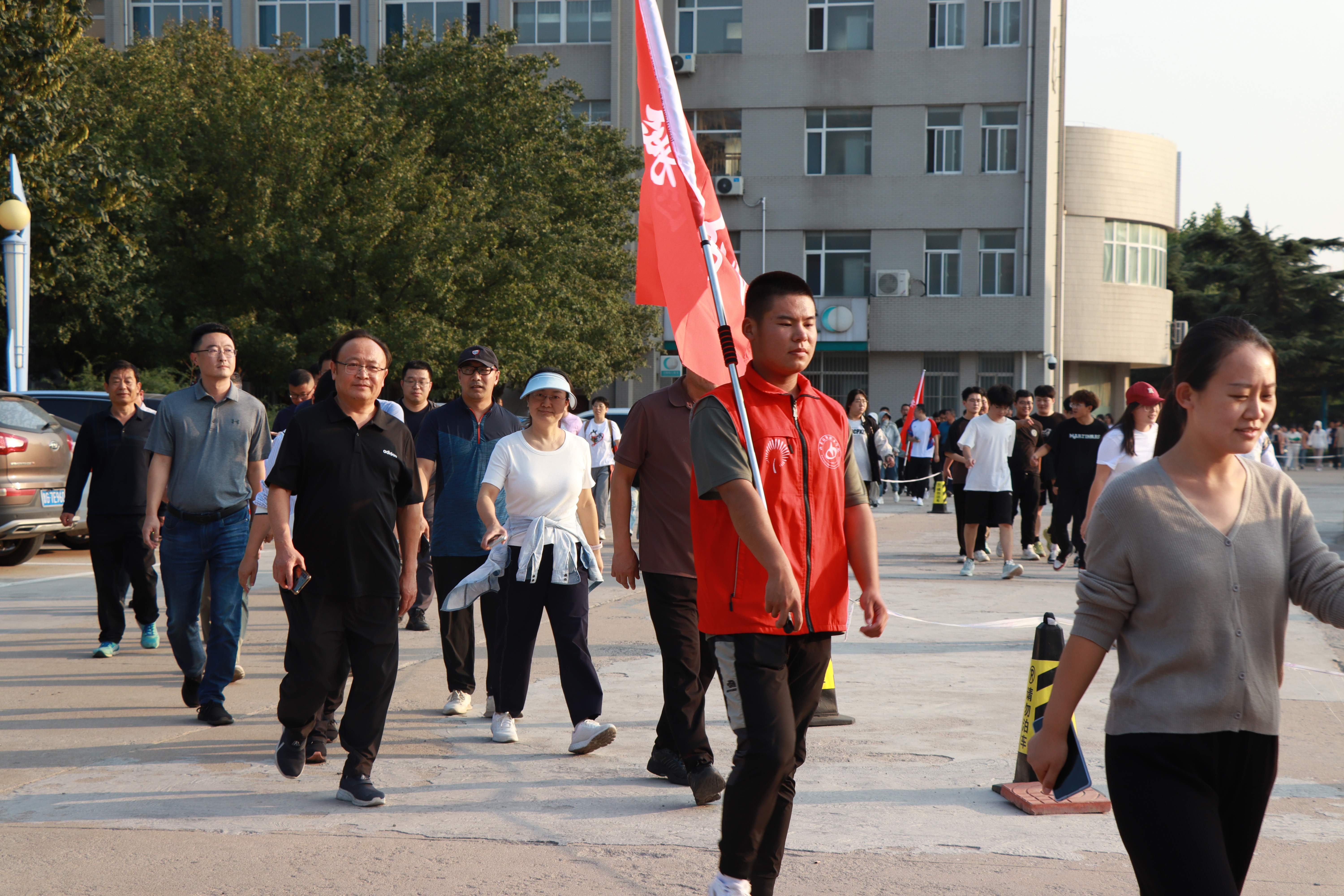 为热烈庆祝中华人民共和国成立75周年,丰富教职工文体生活,倡导健康生活理念,9月27日下午,学院运动场上,六支队伍集结完毕,整装待发,第三届教职工健步走活动在此启动。学院领导班子成员及各系、部门、单位教职工联合组成的六支健步走队伍参加本次活动。