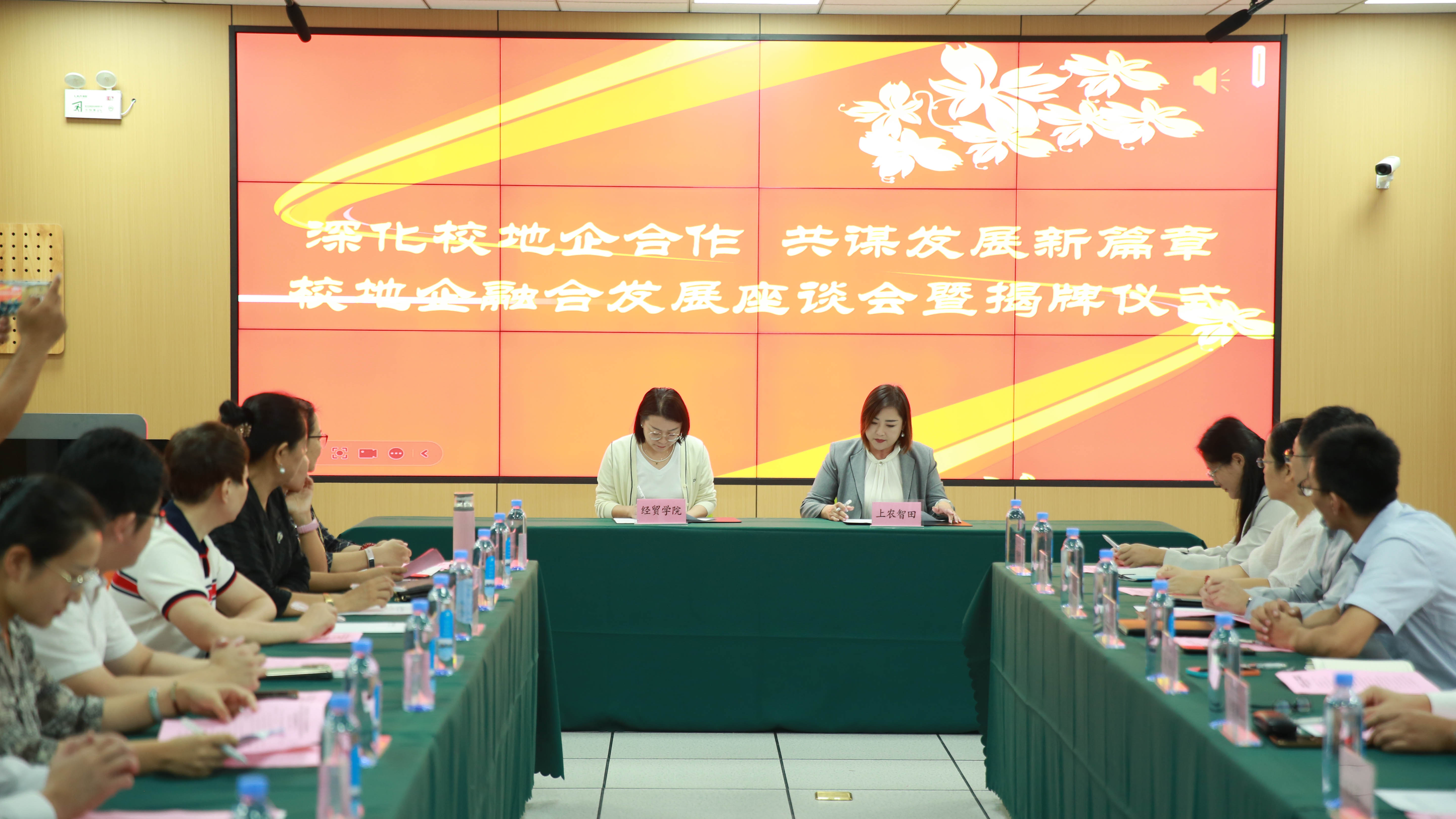 为深化校地企合作交流,进一步搭建合作交流平台,更好推进校地企融合发展,9月30日,潍城区校地企融合发展座谈会暨潍城区直播电商产教融合实训基地揭牌仪式在学院举行。潍城区委副书记、组织部部长李飞雨,共青团潍城区委书记韩泽宇,妇联党组书记、主席刘娟,人社局党组成员、副局长赵洪东,学院党委副书记、院长陈卫国,副院长张强出席会议。潍坊上农智田农业科技有限公司、潍坊神元生物科技有限公司、潍坊益康宝食品有限公司、恩佐(潍坊)服饰有限公司等15家企业负责人,学院工商管理系、教务处有关领导及专业负责人参加会议。座谈会由韩泽宇同志主持。