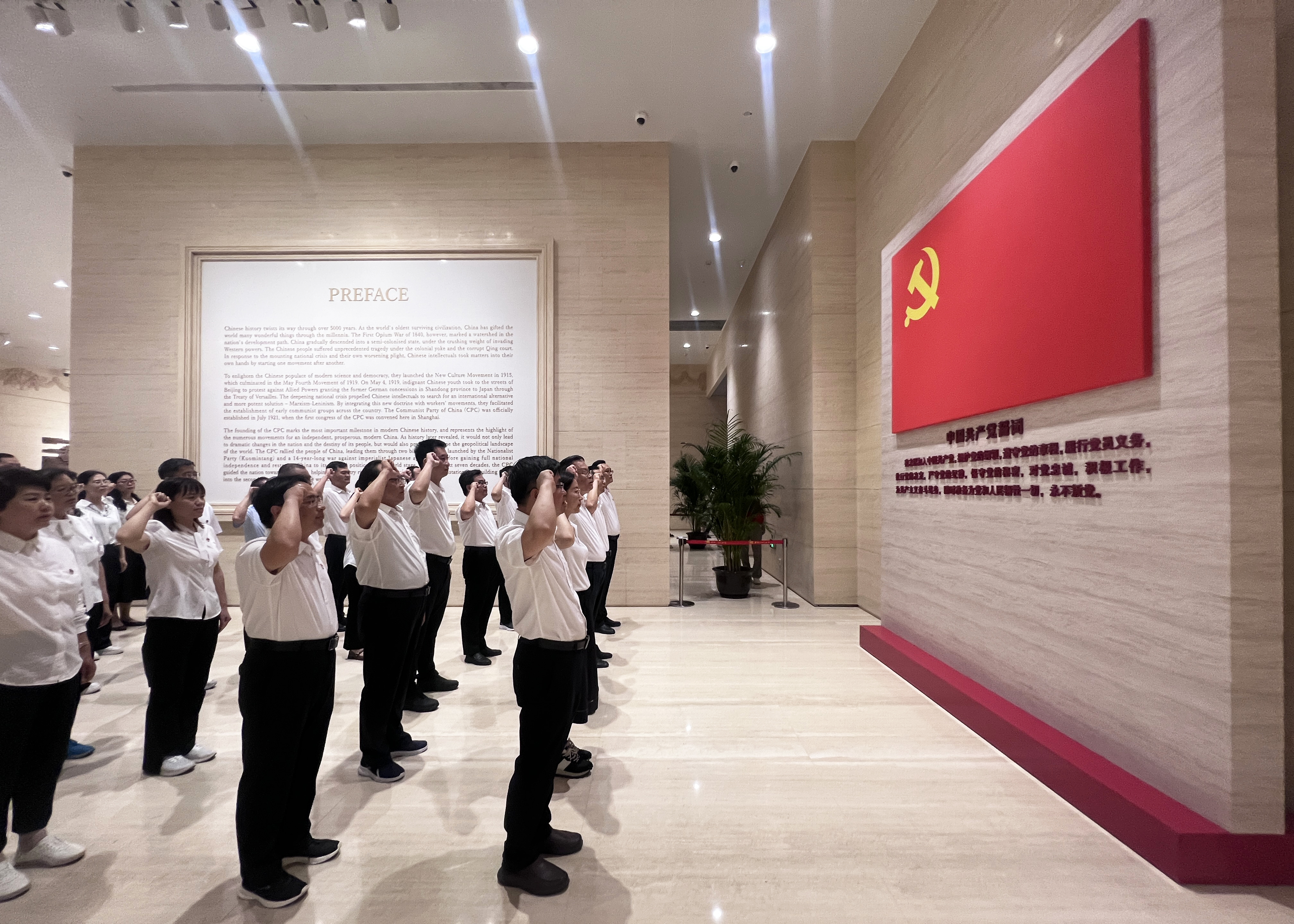 在中共一大旧址纪念馆,全体党员重温入党誓词,重学建党历史,追忆共产党人的初心和使命,坚定理想信念,强化使命担当。