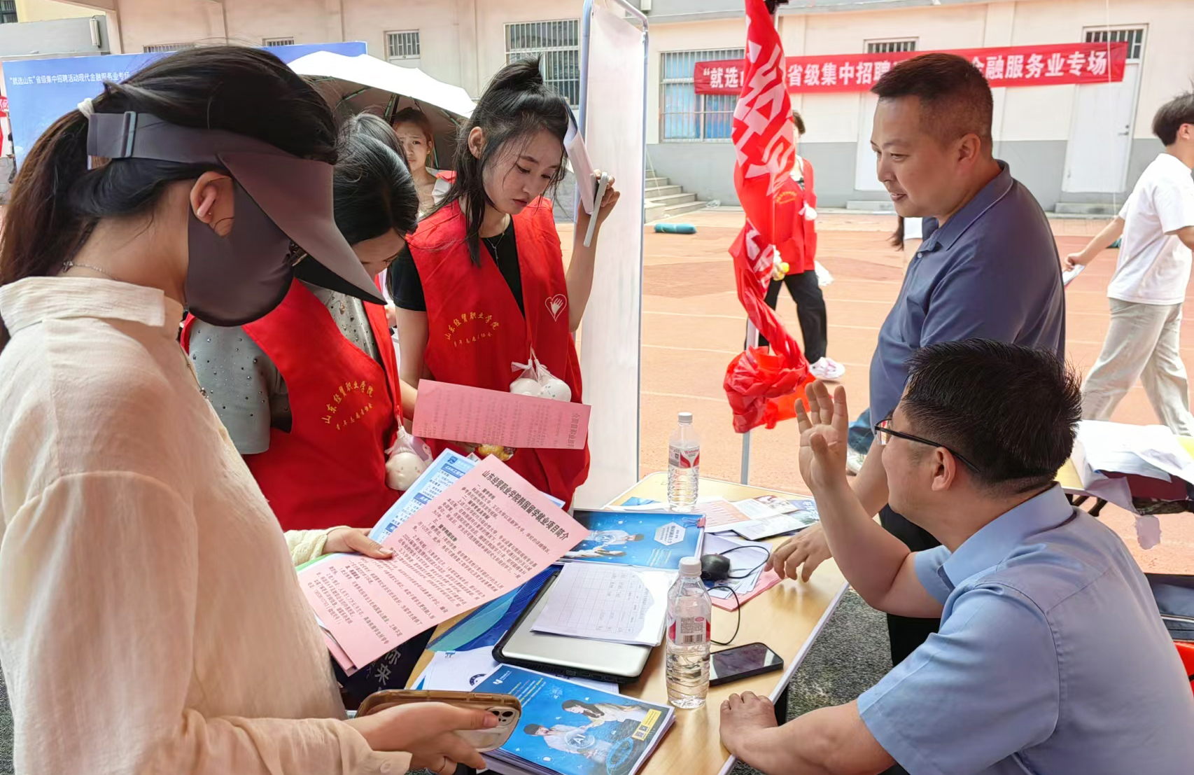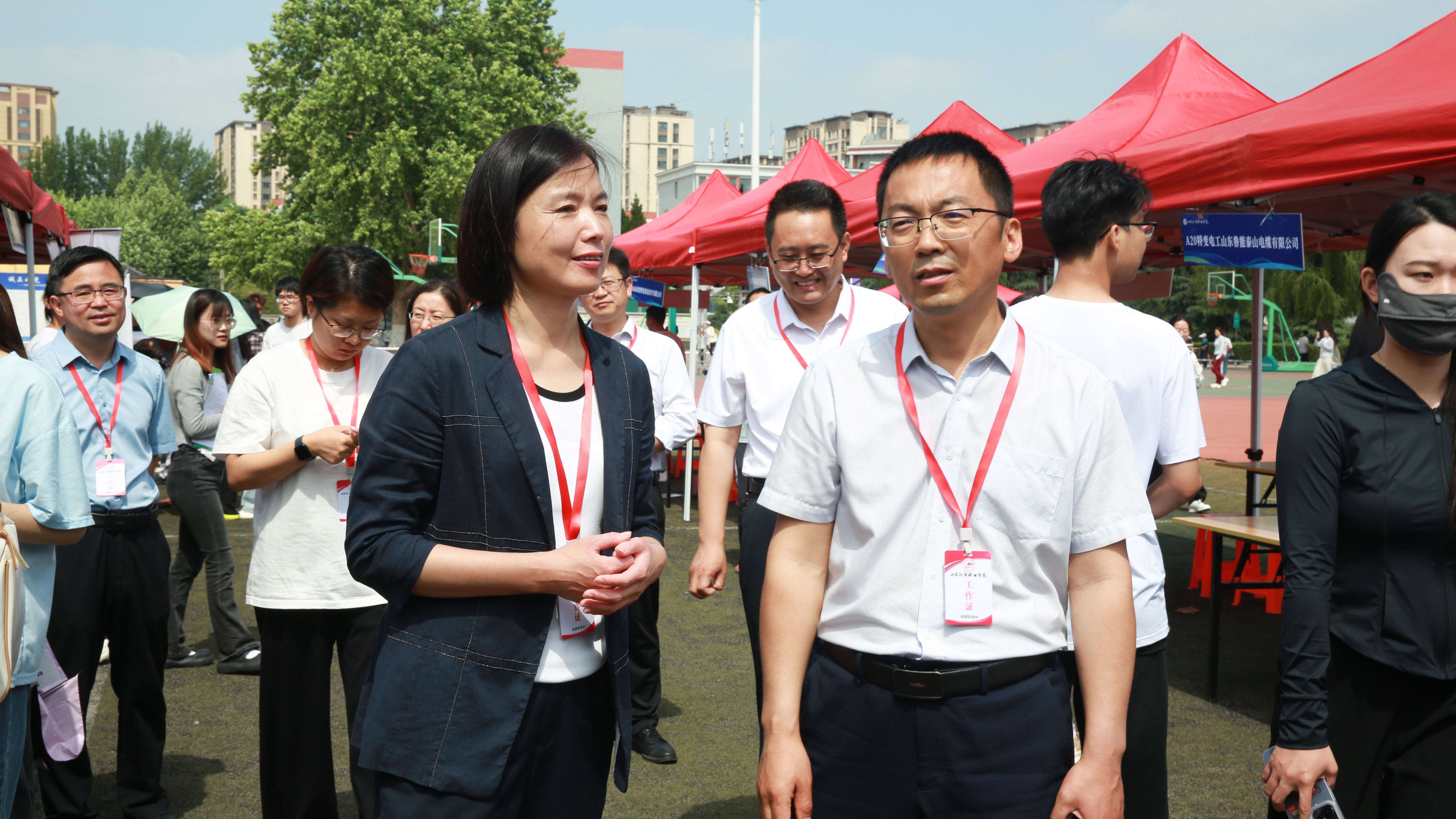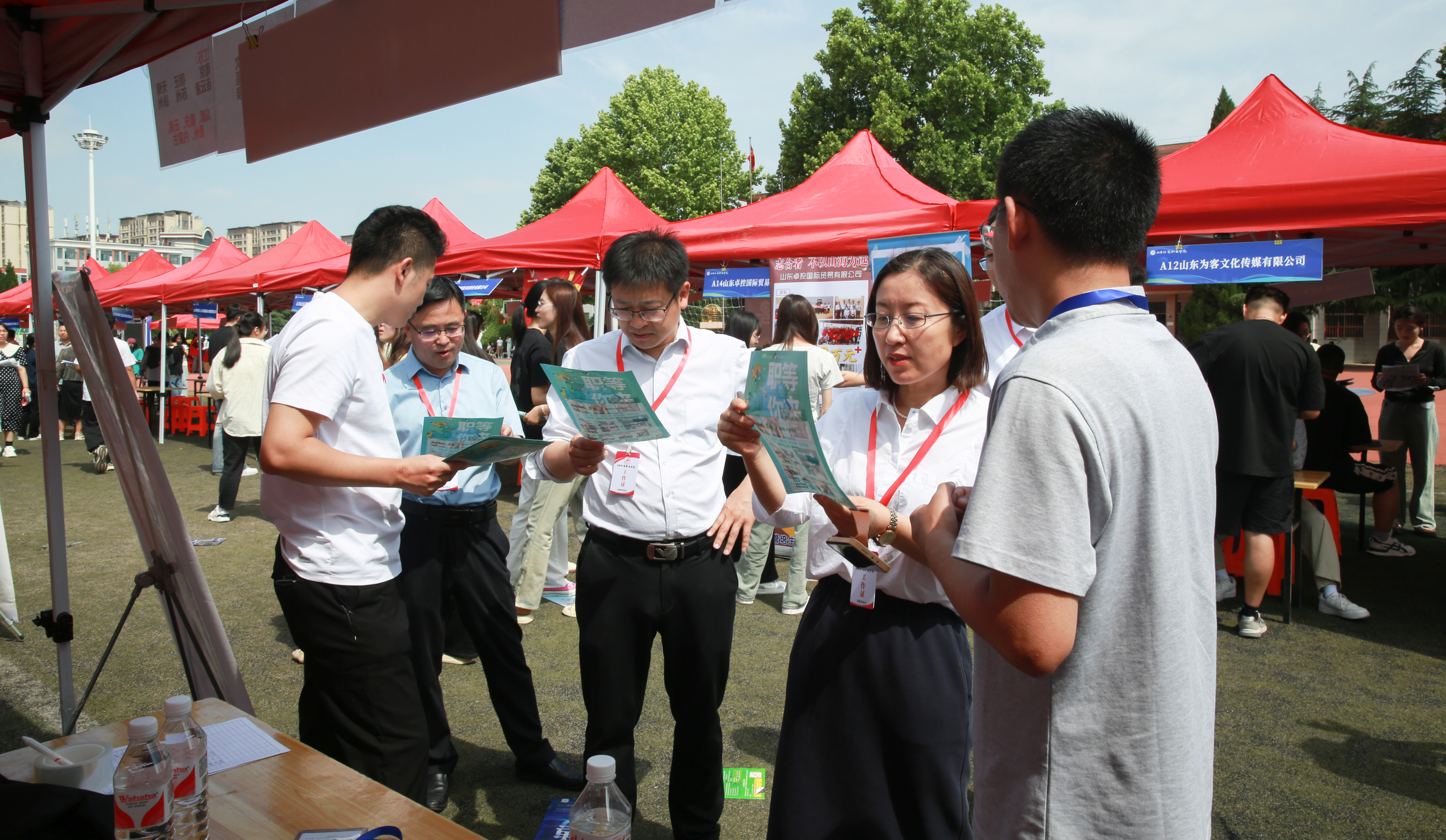 5月25日,山东经贸职业学院在体育场举办“就选山东”省级集中招聘活动现代金融服务业专场双选会。潍城区人社局局长王丽娟、公共就业和人才服务中心副主任李婕,潍坊市人社局魏华等领导到场指导,并与参会单位及学生进行了深入交流。