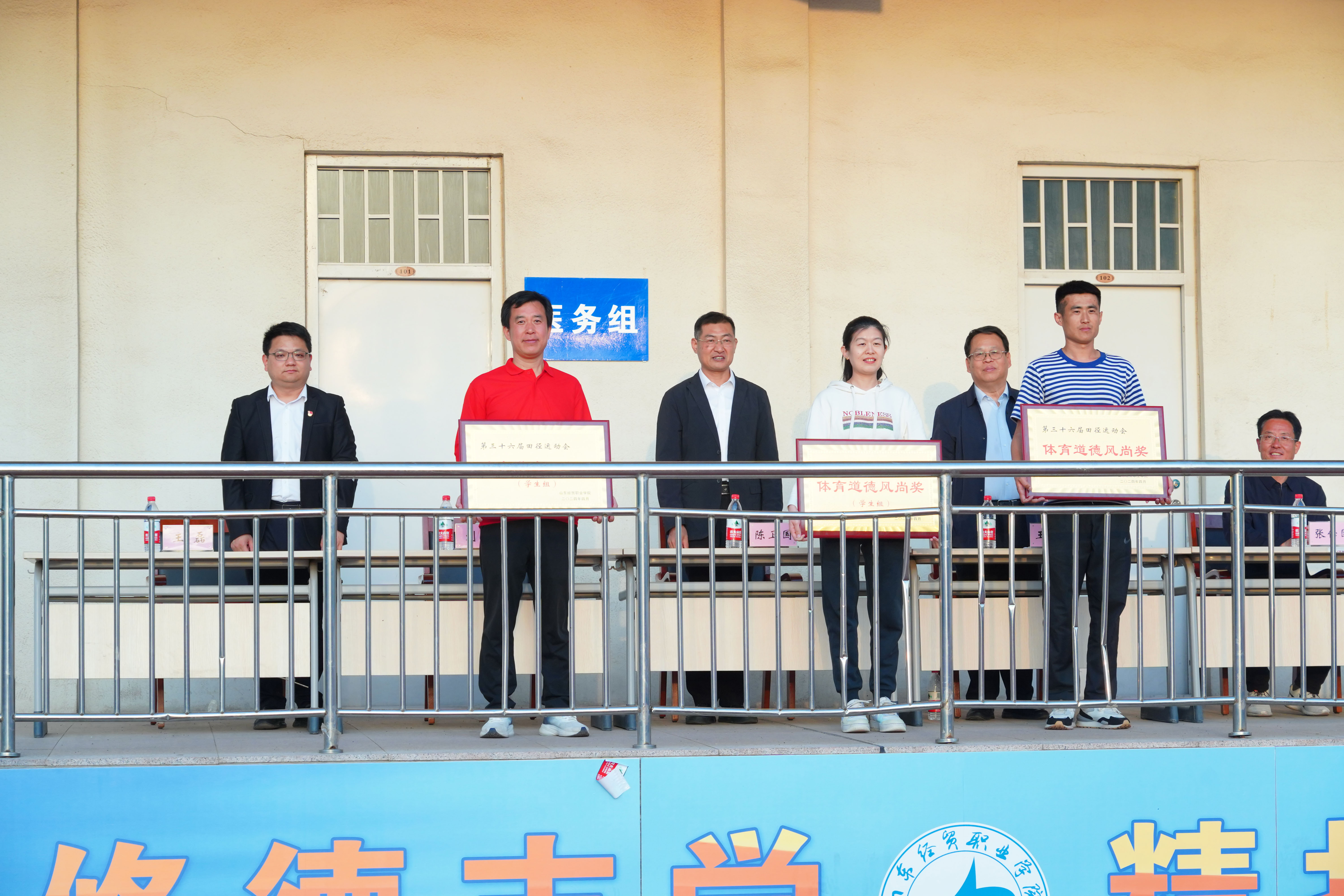 4月26日,学院第三十六届田径运动会顺利完成各项赛事,圆满落下帷幕。过程中,全院师生积极参与,挑战自我,收获满满。学院党委副书记、院长陈卫国,党委副书记王炳华,纪委书记刘莹,学院体育运动委员会副主任张传国,本届田径运动会副总裁判长王磊、王永林出席闭幕式。闭幕式由刘莹主持。