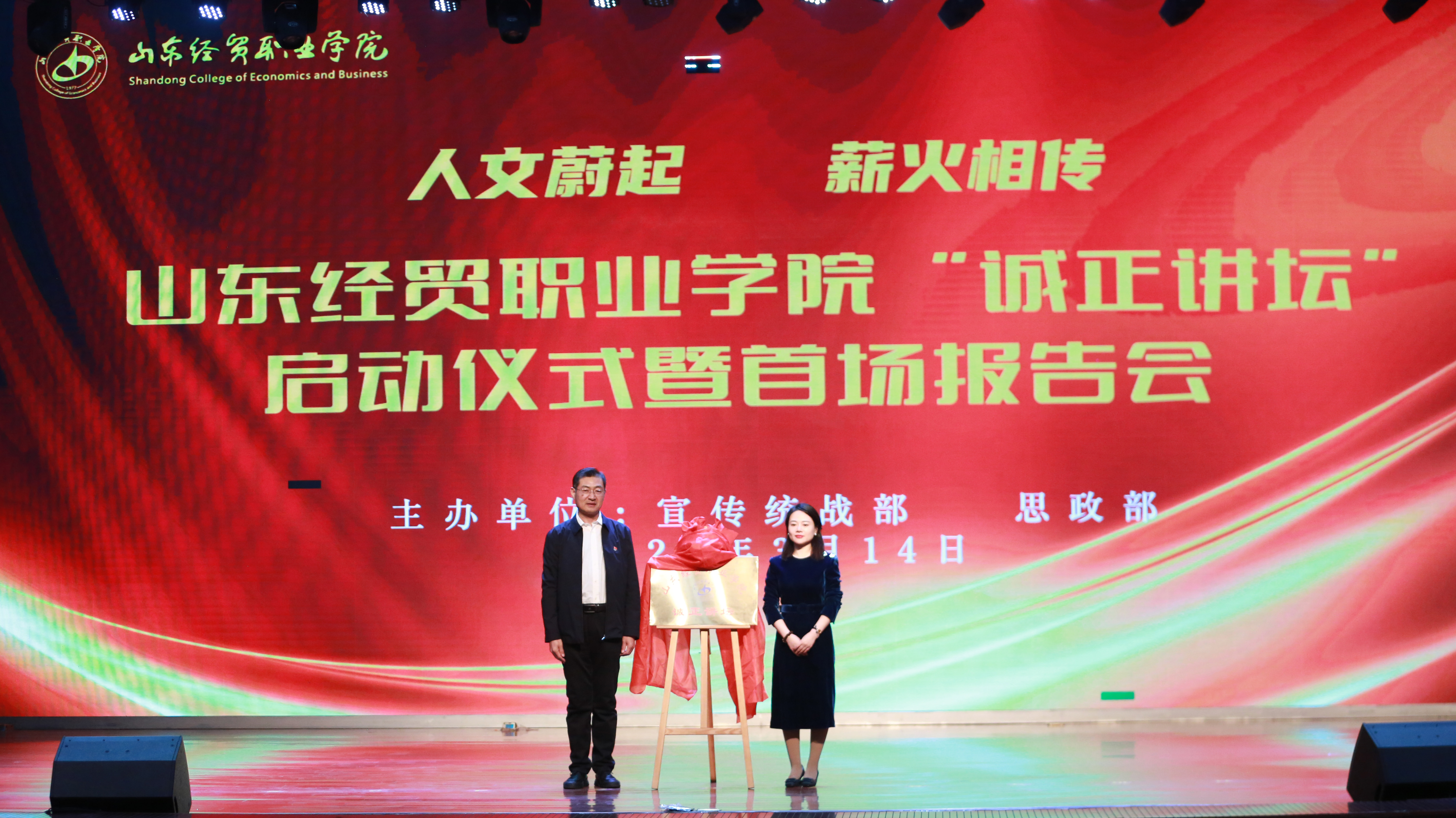 为深入学习宣传贯彻习近平文化思想,加强校园文化建设,推动思想政治工作改革创新,3月14日,由学院宣传统战部和思政部主办的“诚正讲坛”启动仪式暨首场报告会在大学生创业活动中心举行。活动特邀山东博物馆书画部副主任、副研究馆员、“全国古籍保护先进个人”董倩倩为主讲嘉宾。学院党委副书记、院长陈卫国出席会议并致辞。党委副书记王炳华主持会议。