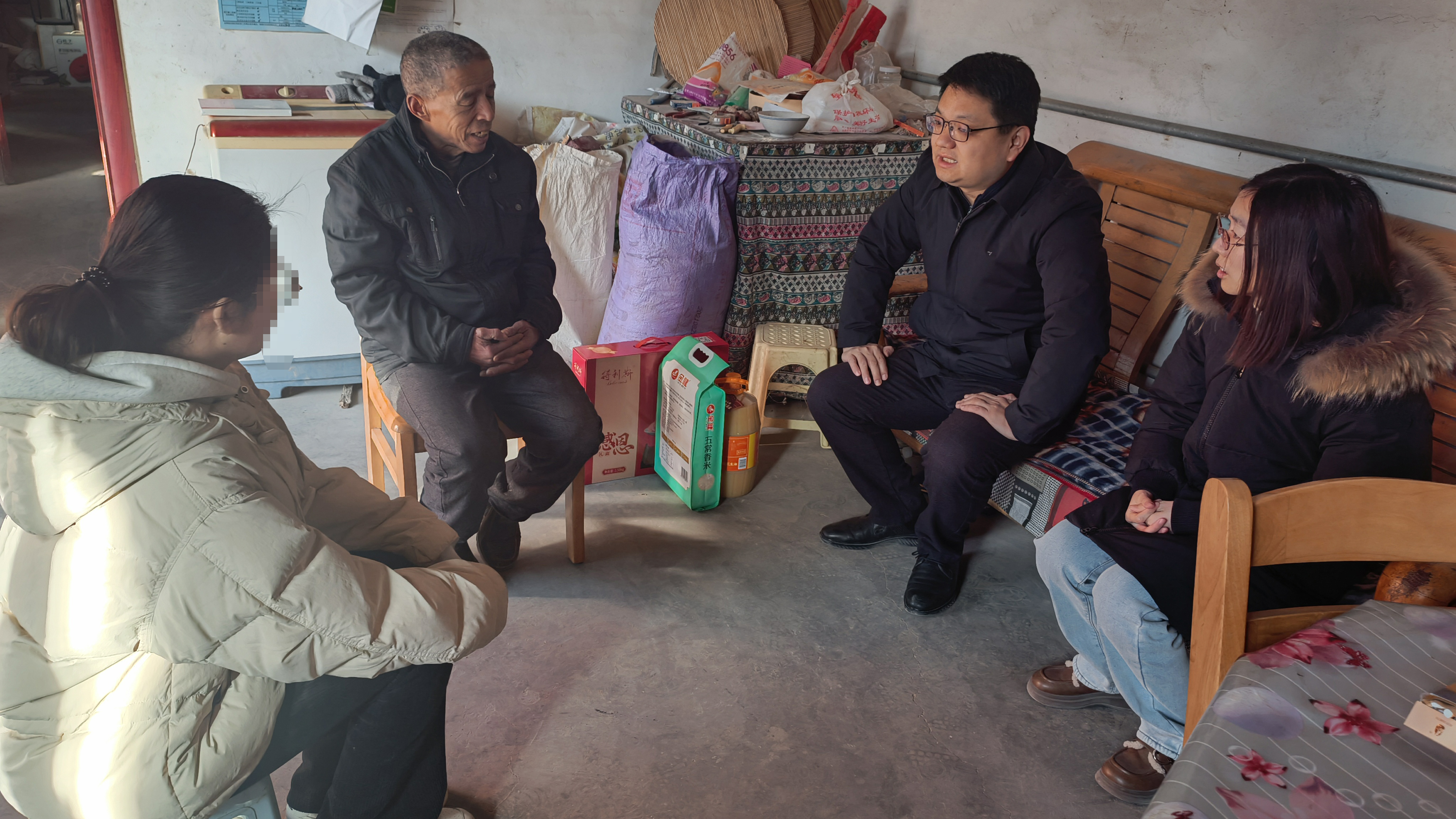 走访人员深入学生家庭,与受访学生家长亲切交谈,全面了解受访学生的生活情况、实际困难及需求,传达党和国家及学校的资助政策。为受访学生送去米、油、春节礼盒、书籍等生活物资和学习用品,传达学院对学生的关心关爱。同时,鼓励学生树立积极乐观、奋发向上的人生观,克服困难,刻苦学习,早日成为德、智、体、美、劳全面发展的高素质人才,更好地回报父母,回报社会。
